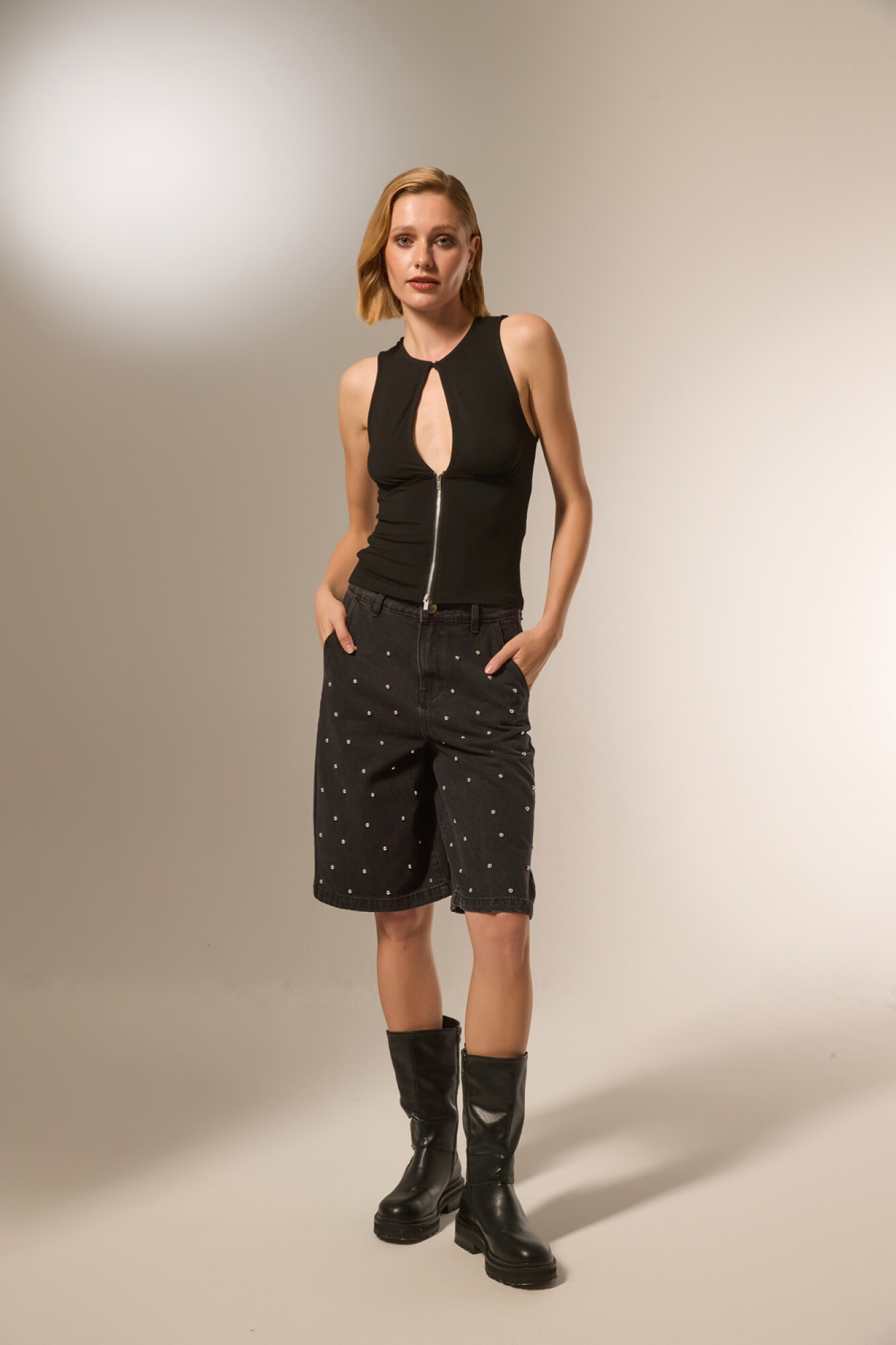 $ 611   Nuevos Recibilo en  Tops bretel ancho de viscosa, abertura, al cuerpo, con boton y con cierre