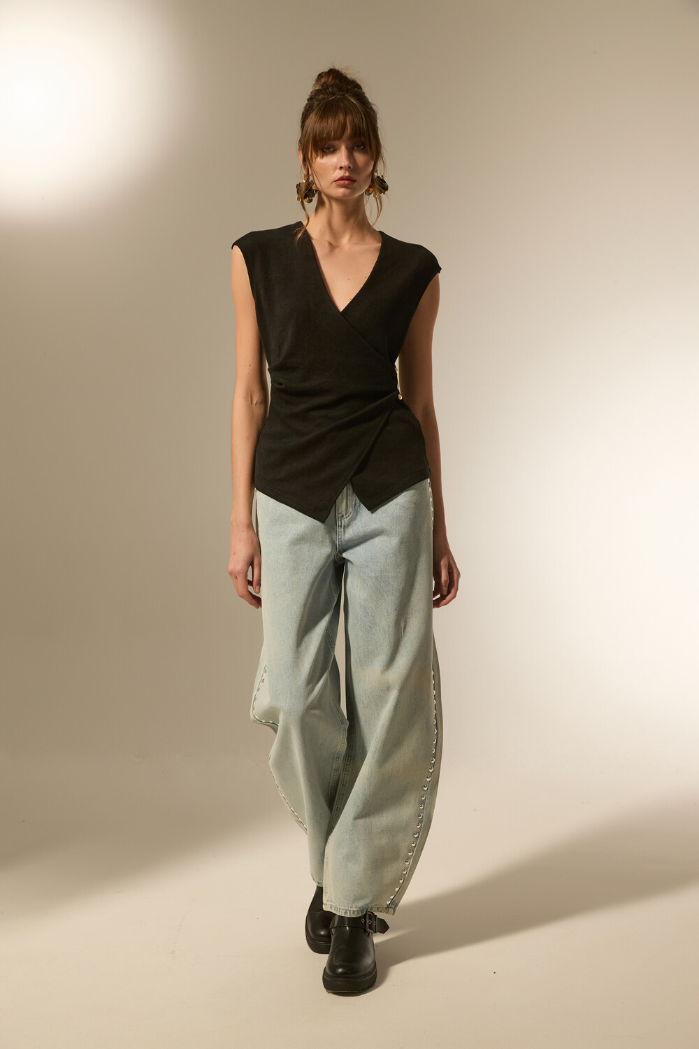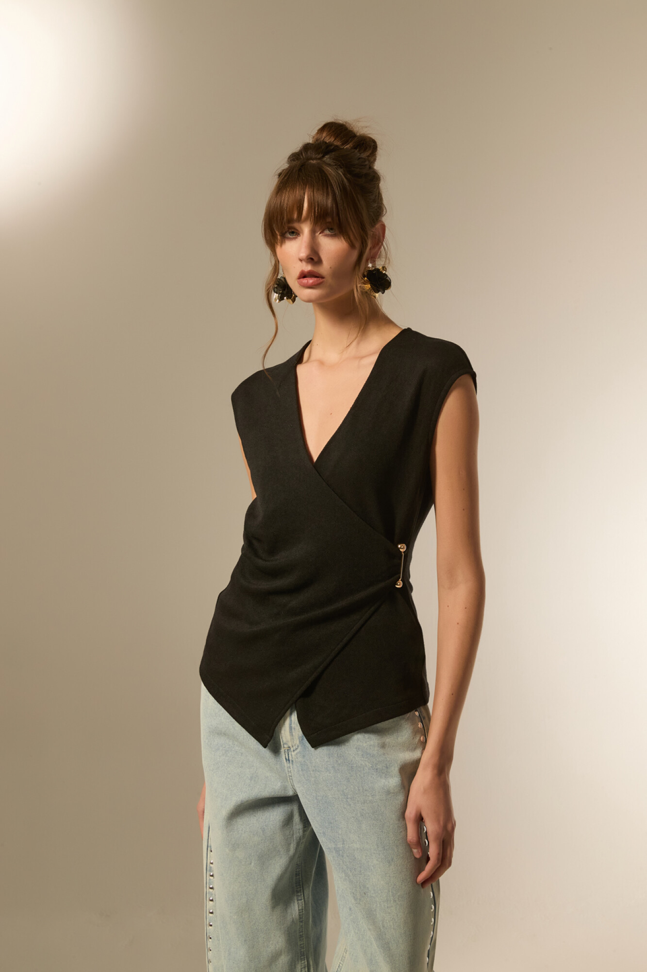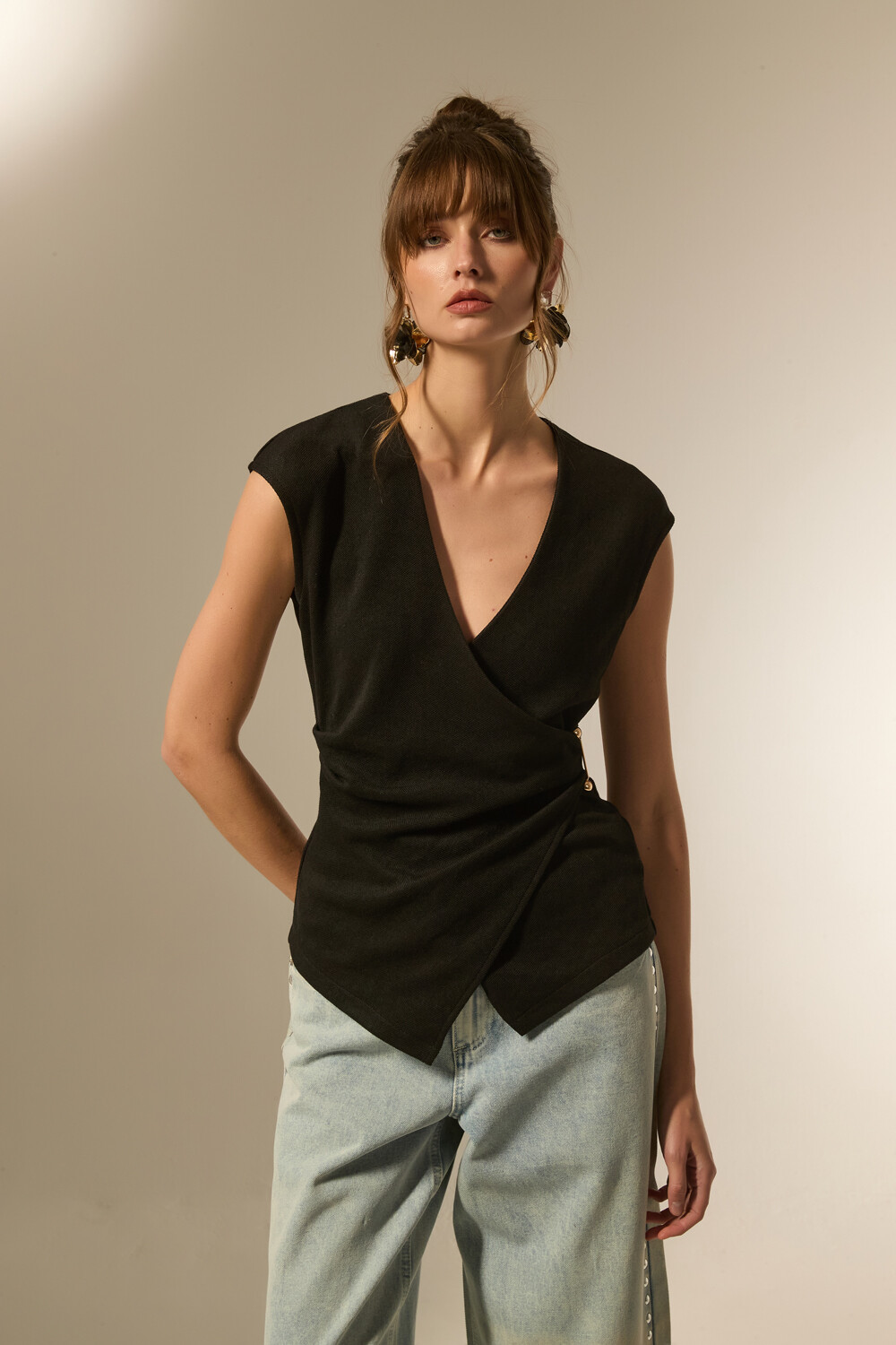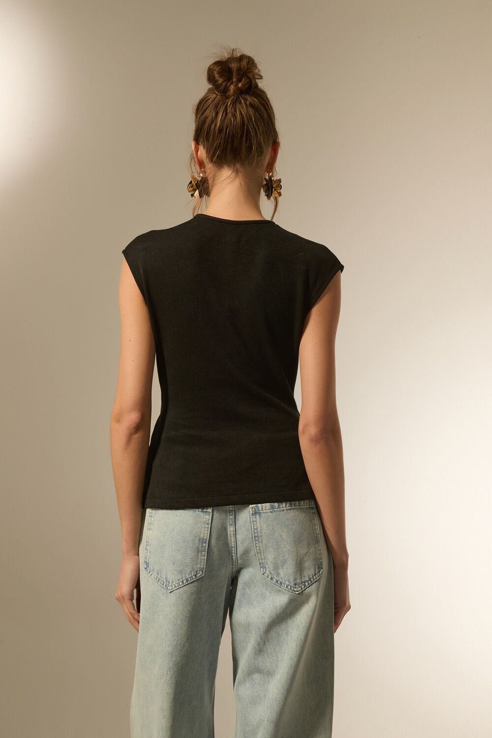 $ 815 Nuevos Tops manga corta de poliester, apliques, al cuerpo y cuello en v