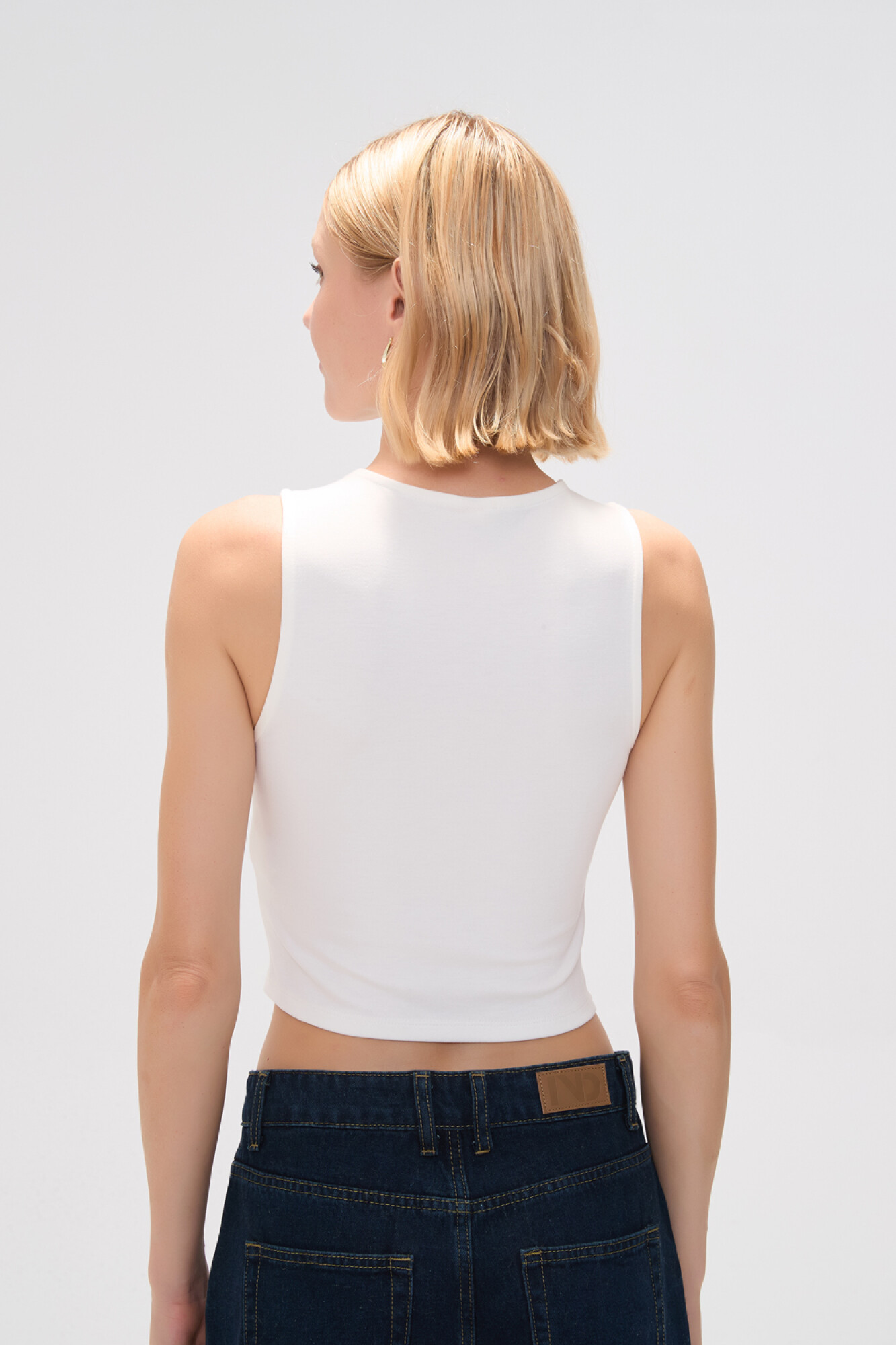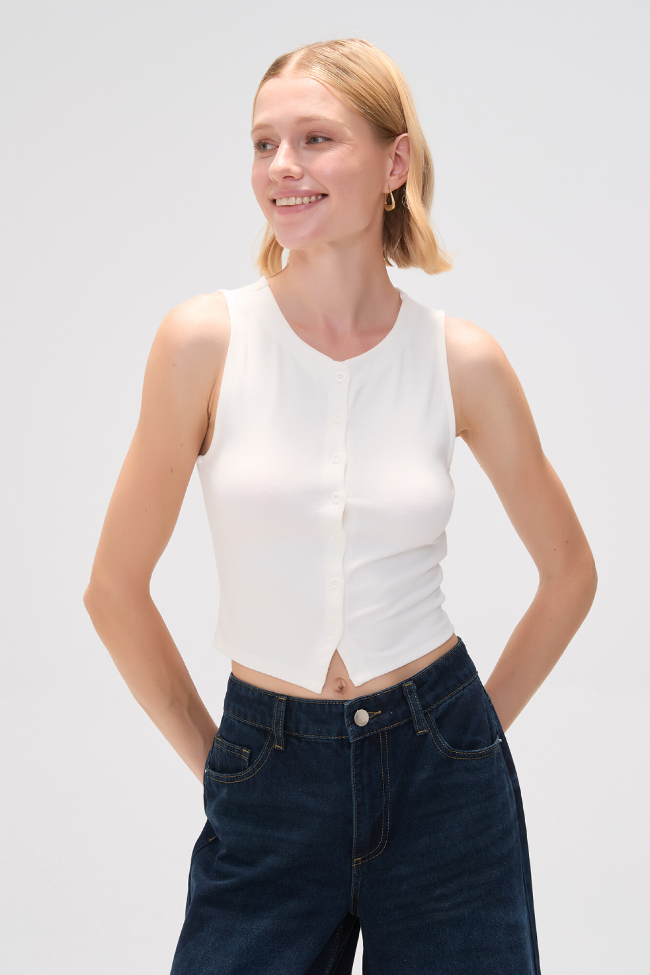 $ 337 Nuevos Recibilo en Tops bretel ancho de viscosa, al cuerpo, con botones y cuello a la base