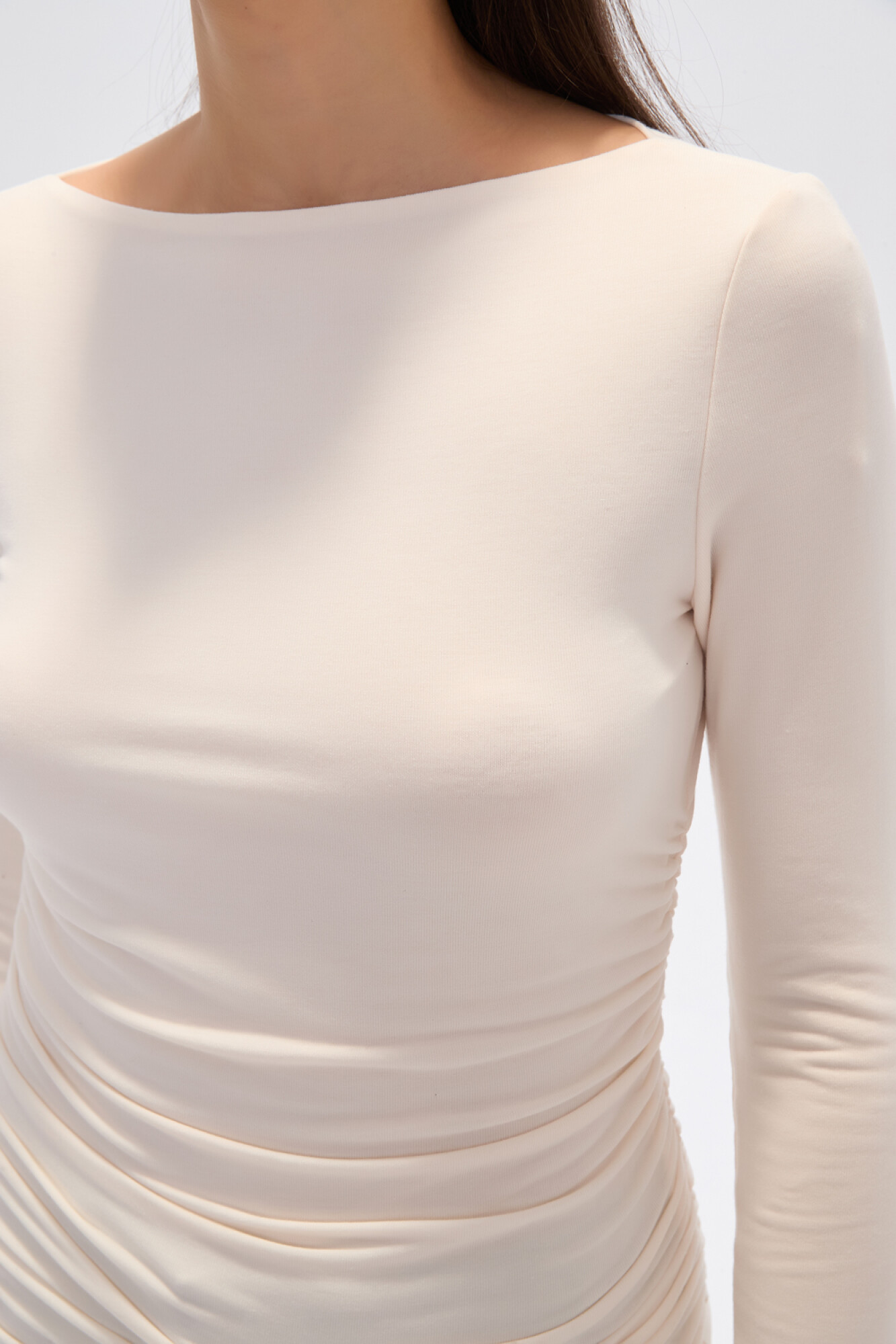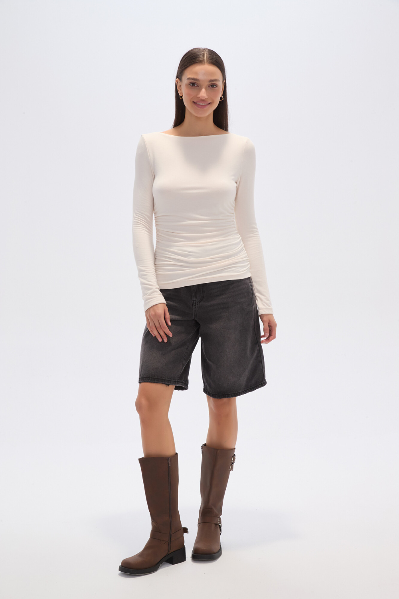 $ 679 Nuevos Recibilo en Tops manga larga de poliester, drapeado, al cuerpo y cuello bote
