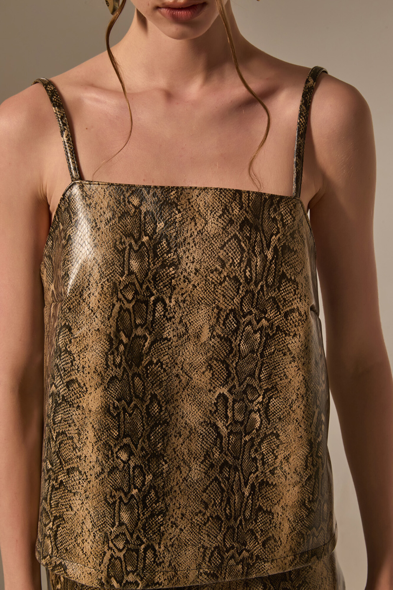 Nuevos Tops bretel fino de pu, aop, holgado, con cierre y cuello recto