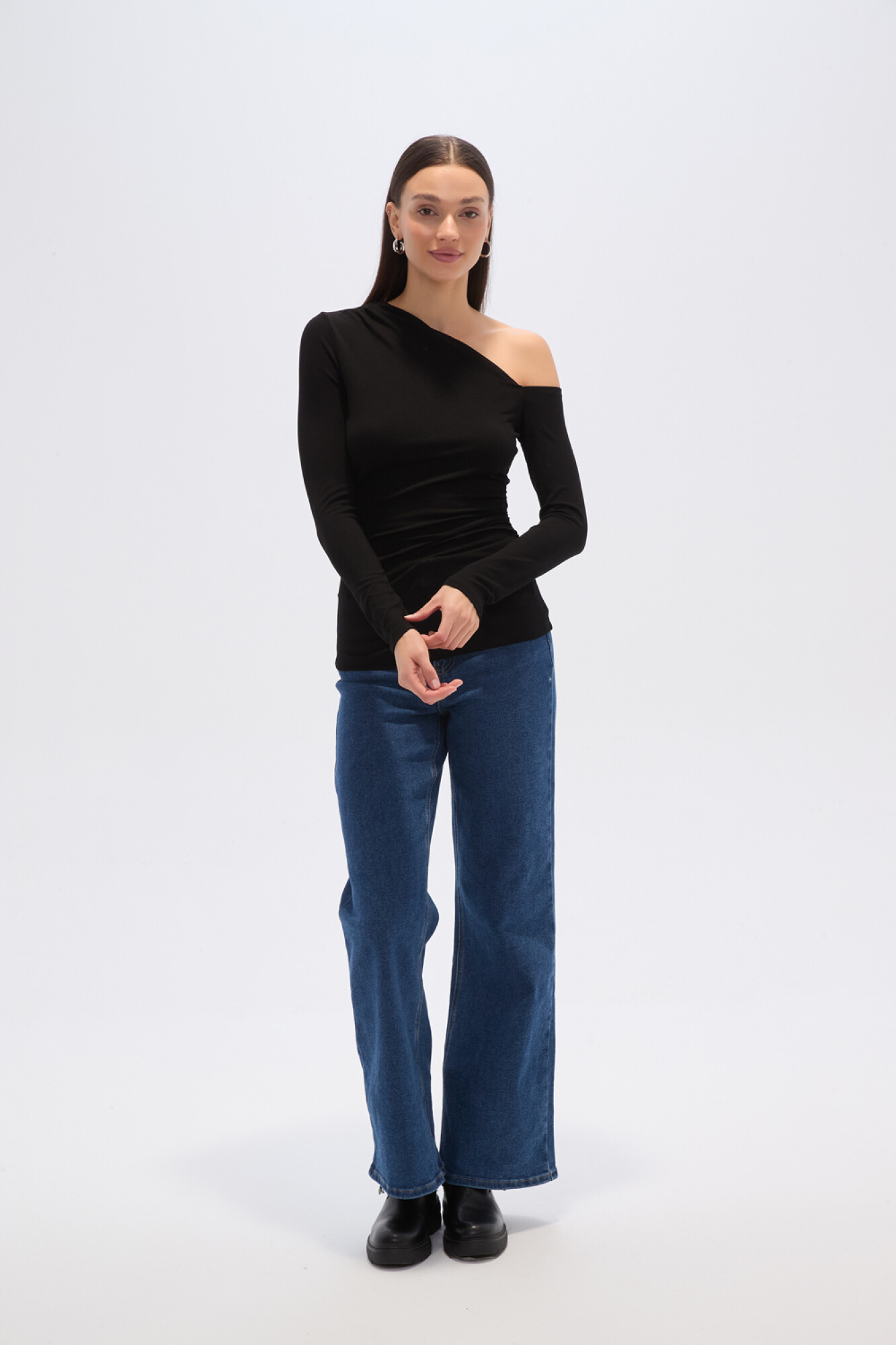 Nuevos Tops manga larga de viscosa, frunces, al cuerpo y cuello asimetrico