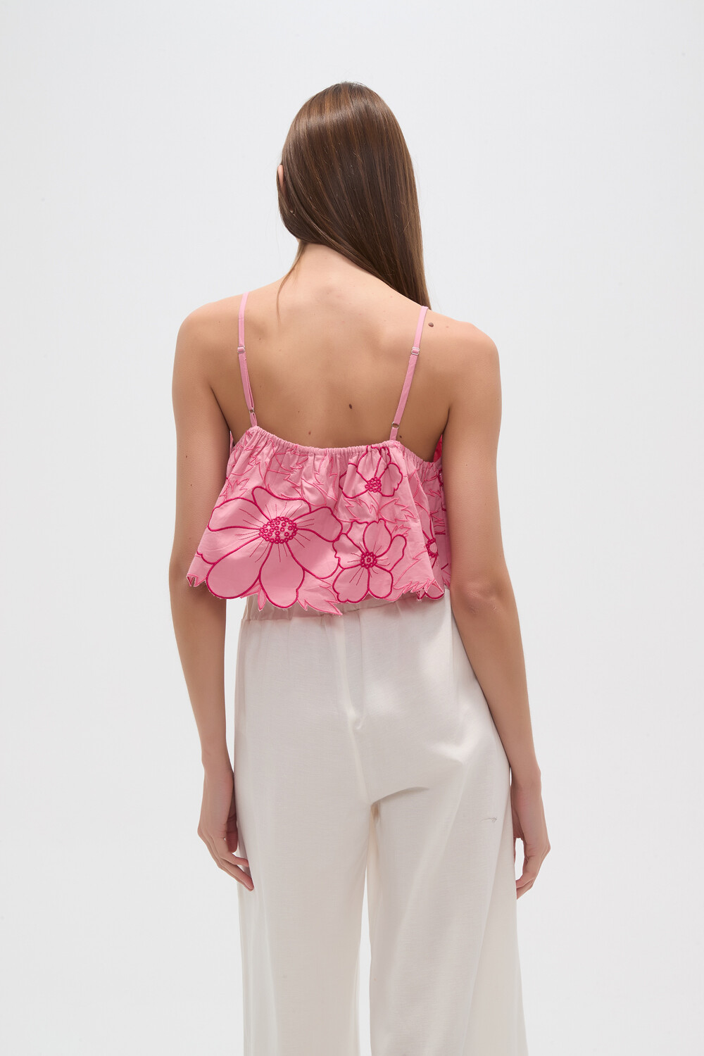 Nuevos Tops bretel lencero de algodon, recurso bordado, bordado, holgado, con mostacillas y cuello profundo