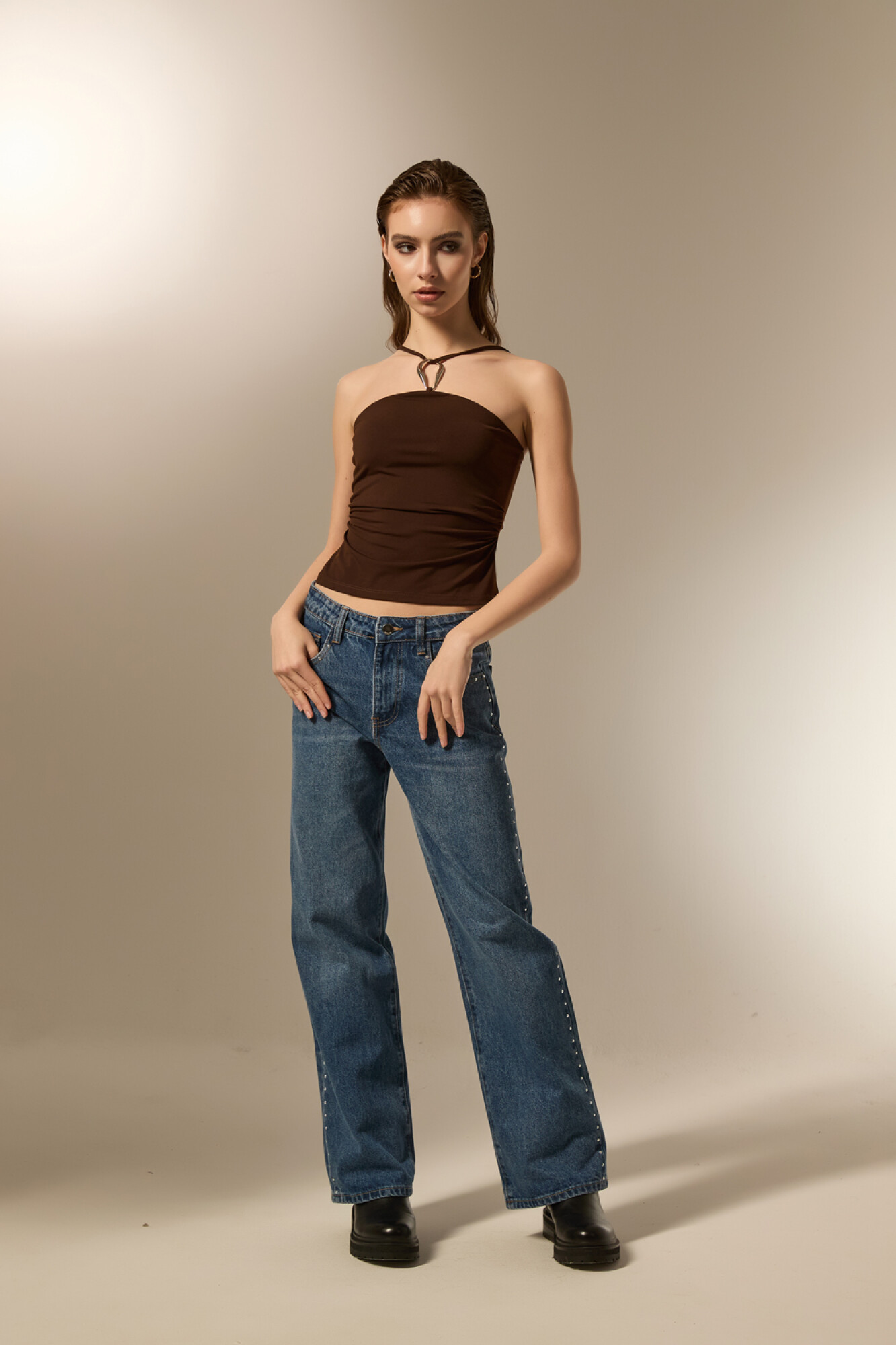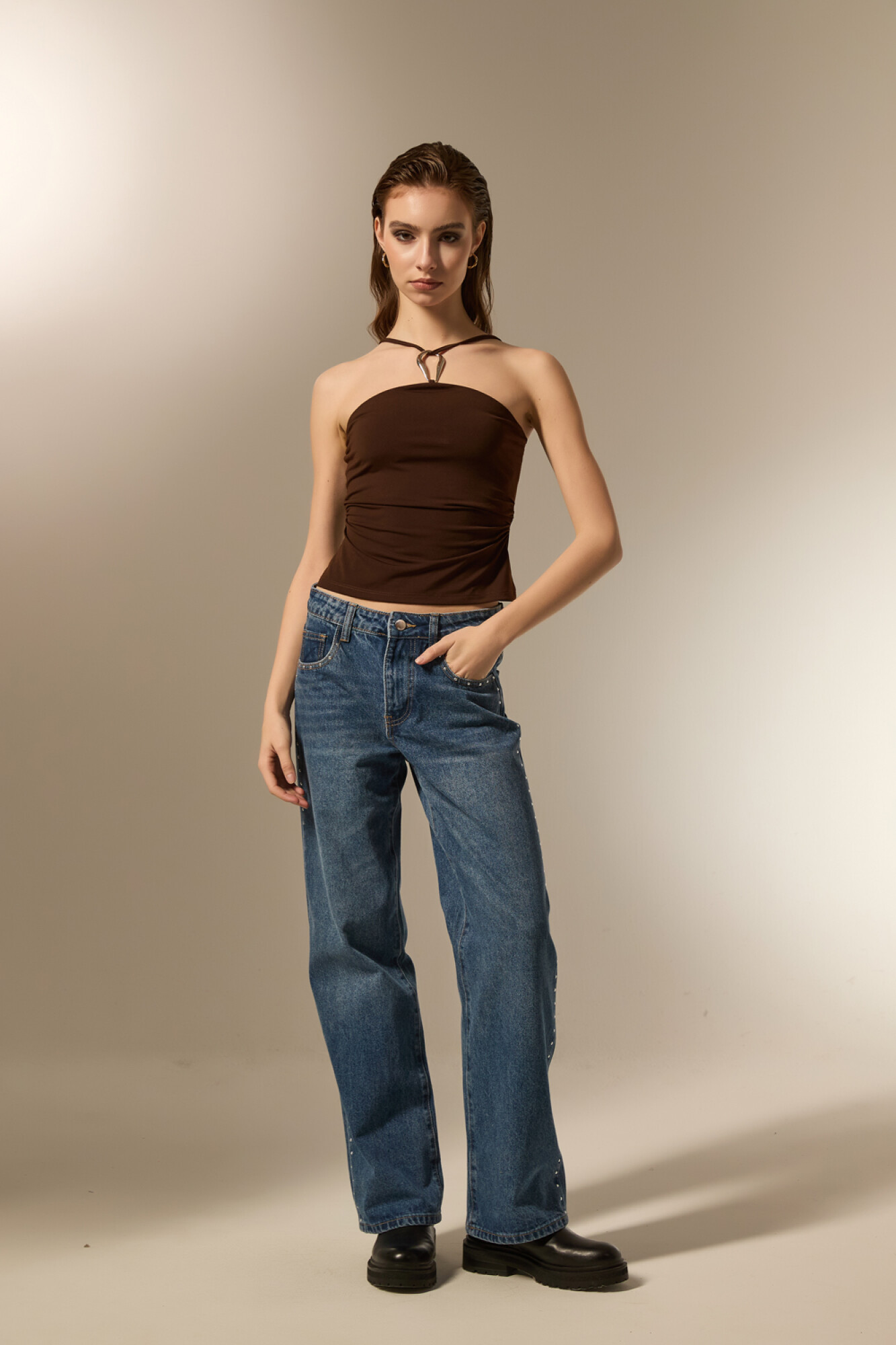 $ 475 Nuevos Recibilo en Tops bretel fino de poliester, al cuerpo, con aro y cuello halter