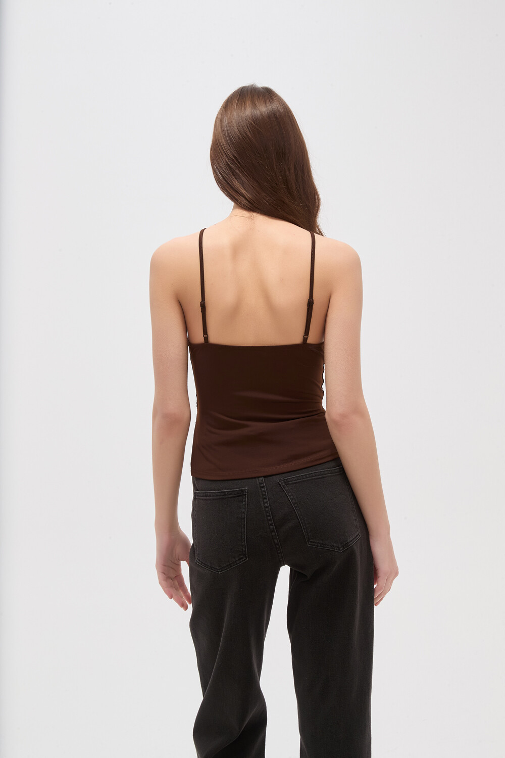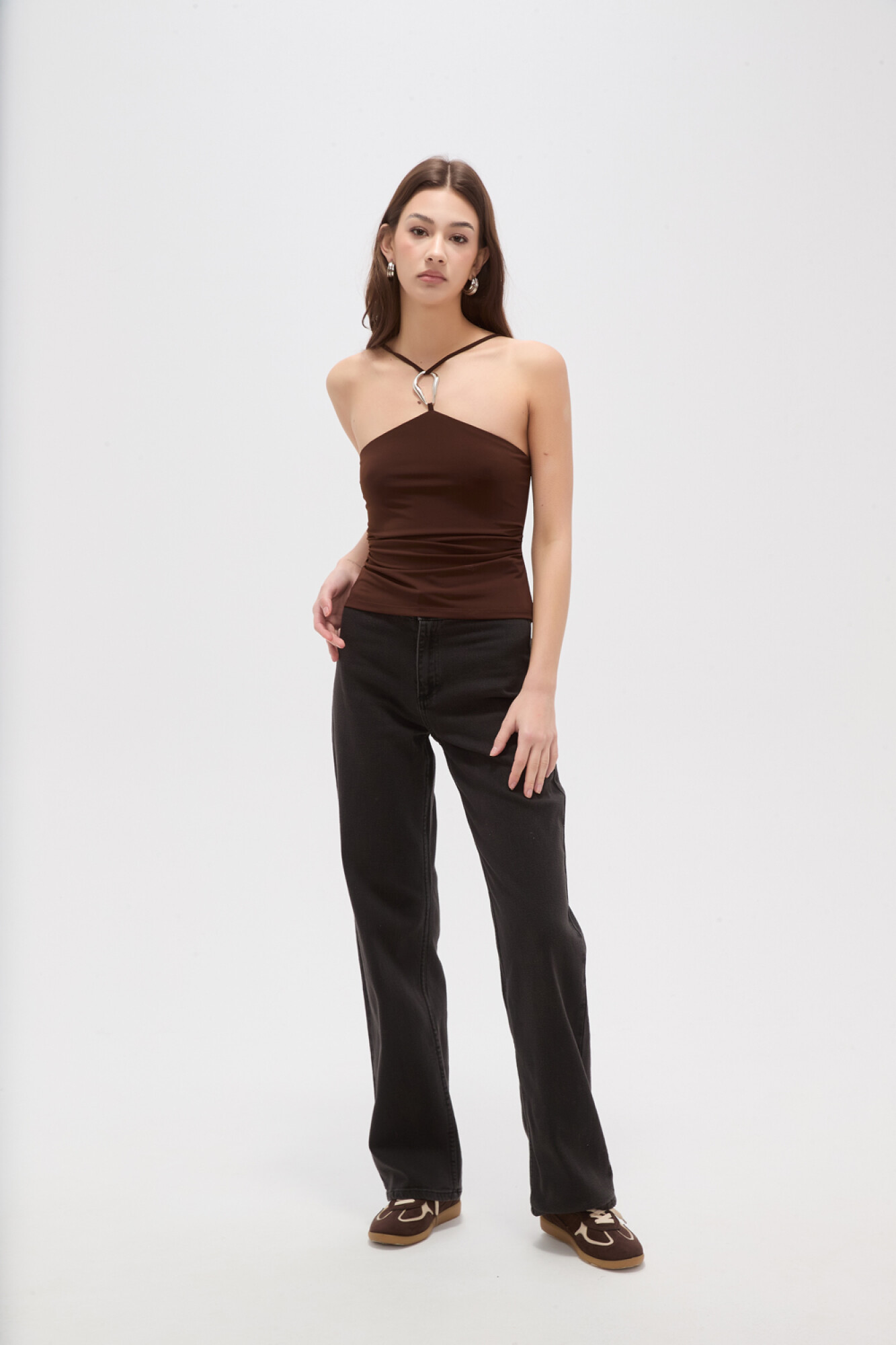$ 475 Nuevos Tops bretel fino de poliester, al cuerpo, con aro y cuello halter