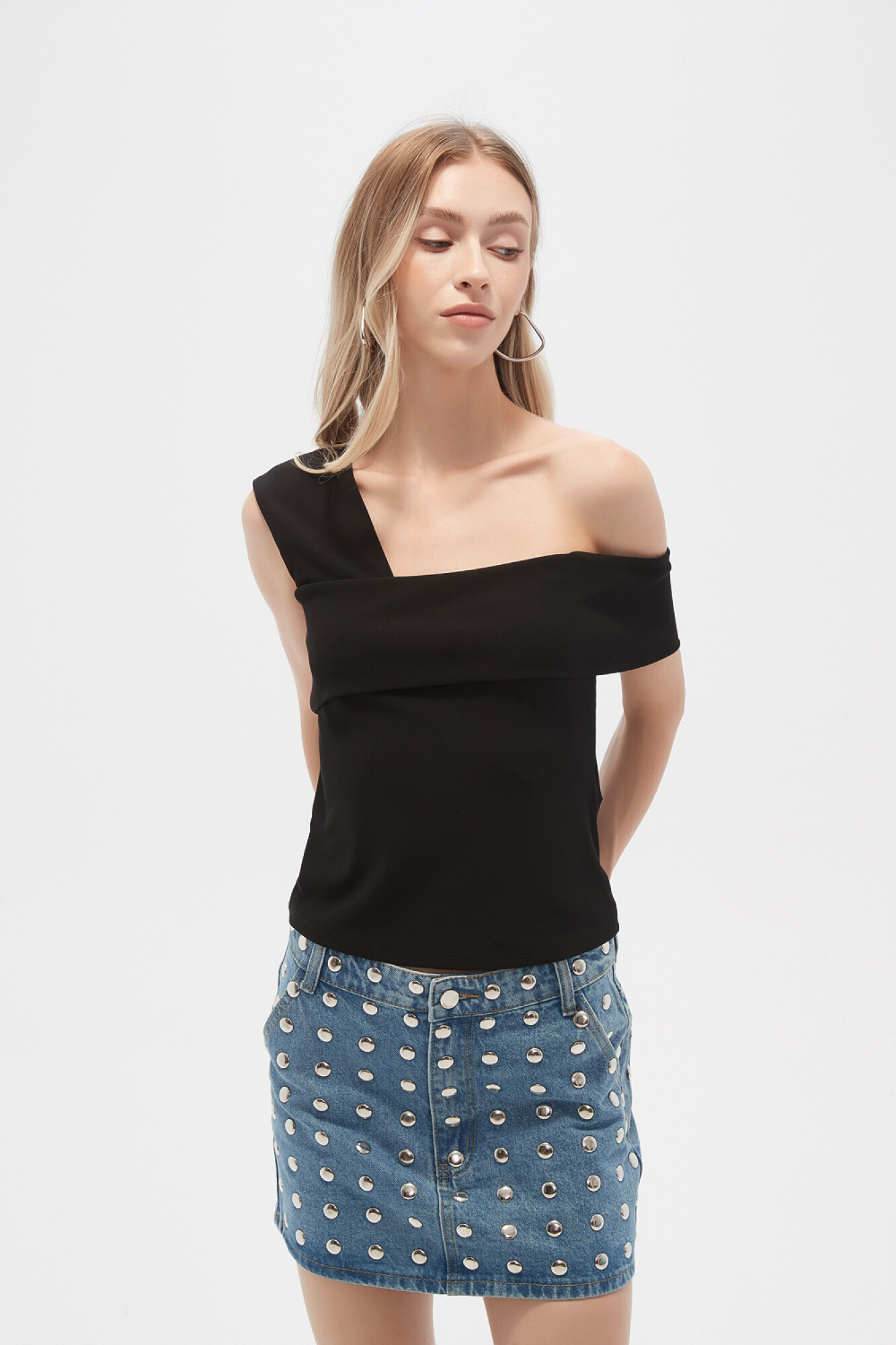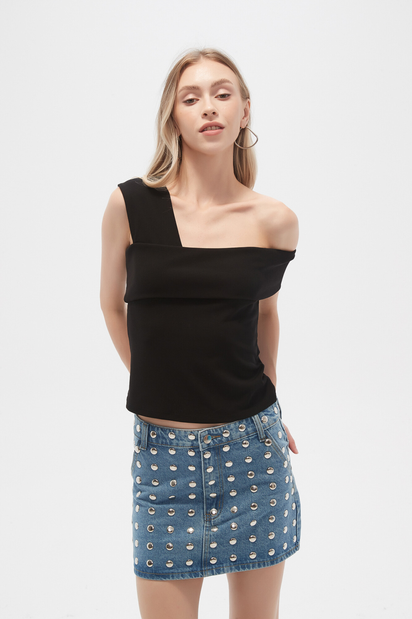 Nuevos Recibilo en Tops bretel ancho de poliester, al cuerpo y cuello asimetrico