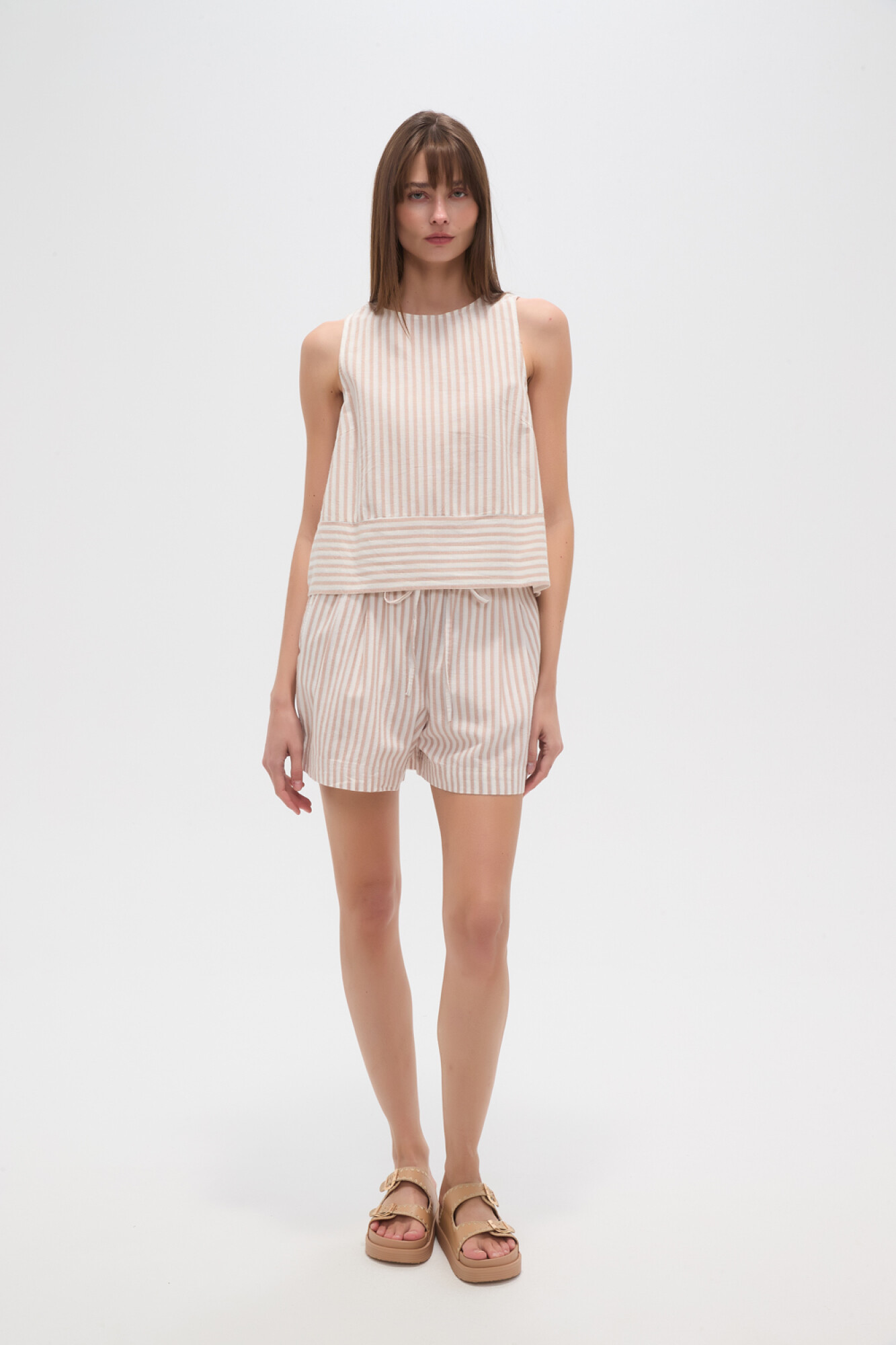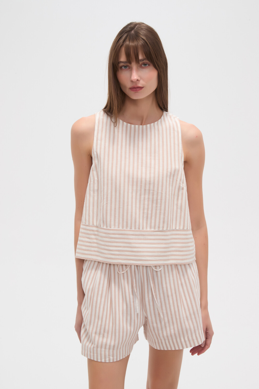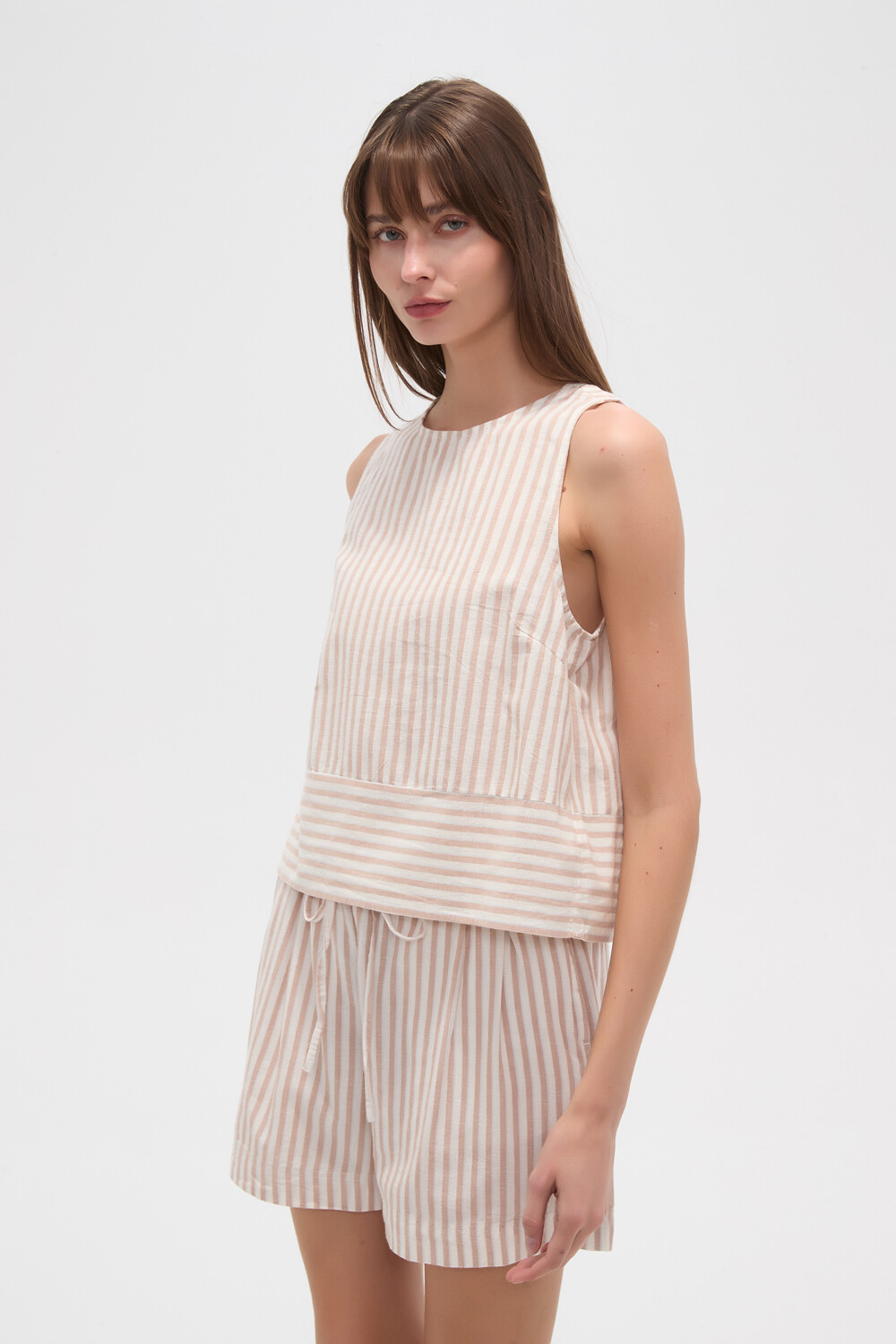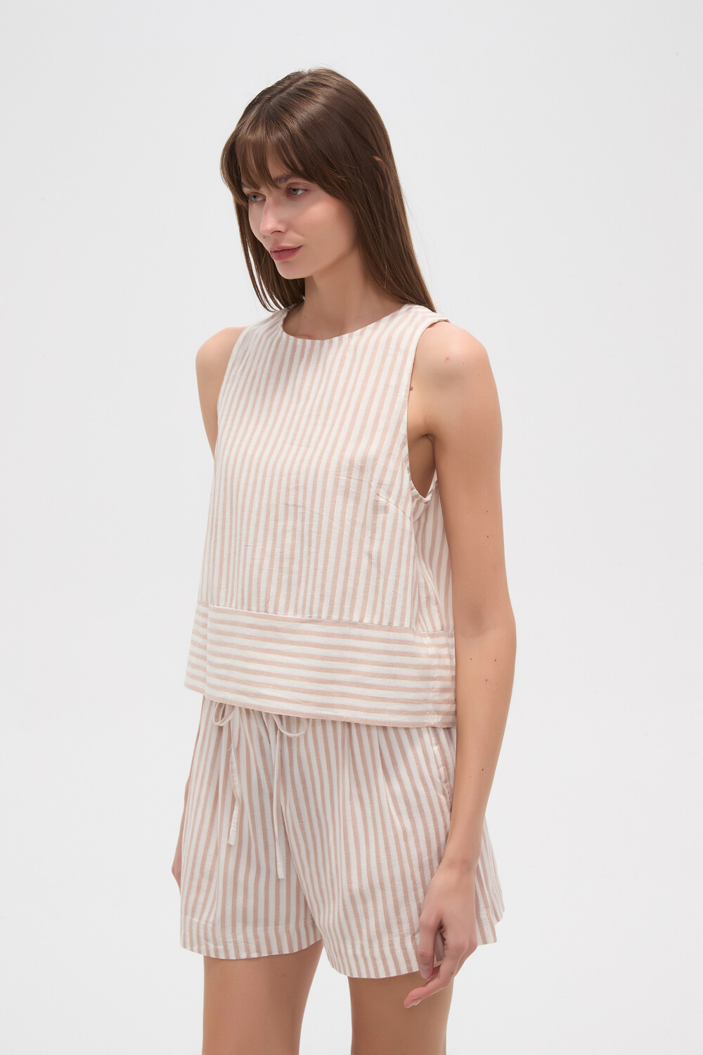 Nuevos Tops cropped de lino, rayas, recto, con boton y cuello a la base