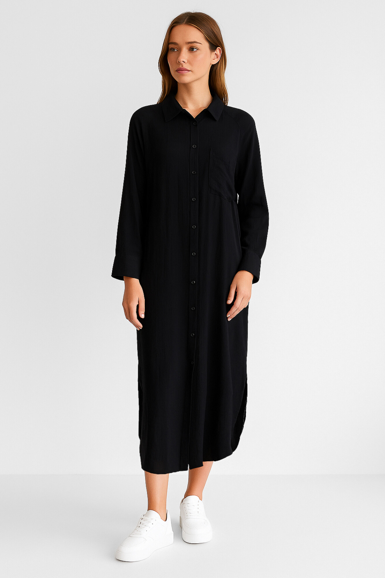 $ 899 Nuevos Tunica manga larga de lino, con bolsillo, holgado, con botones y cuello camisa