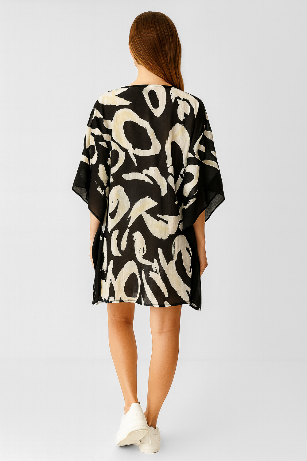 $ 731 Nuevos Tunica algodon, aop, holgado, con cordon y cuello en v