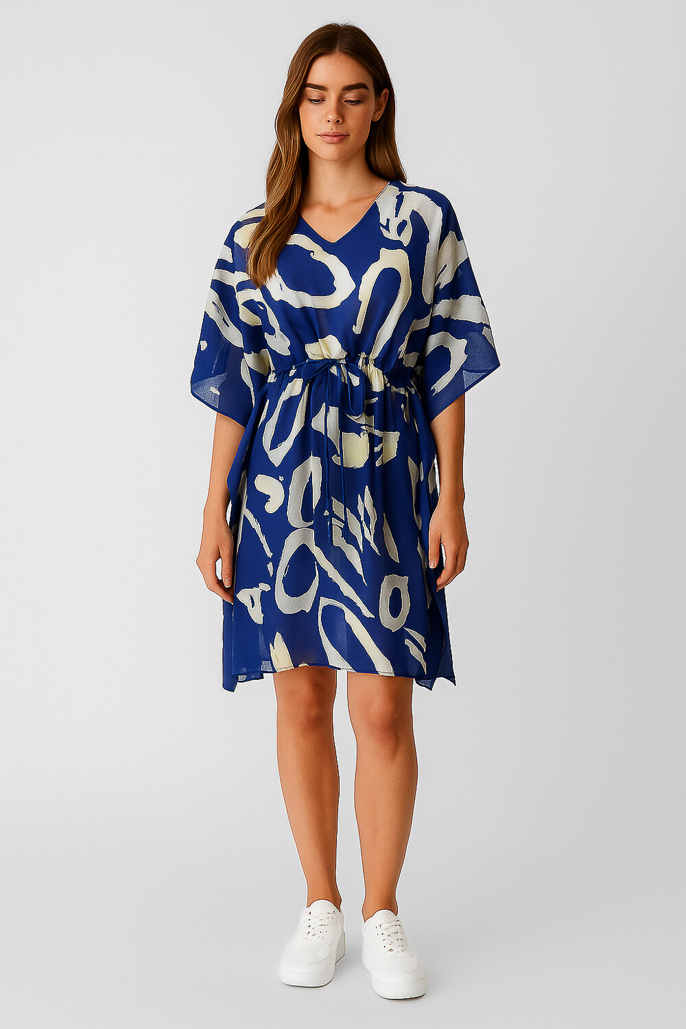 Nuevos Recibilo en  Tunica algodon, aop, holgado, con cordon y cuello en v