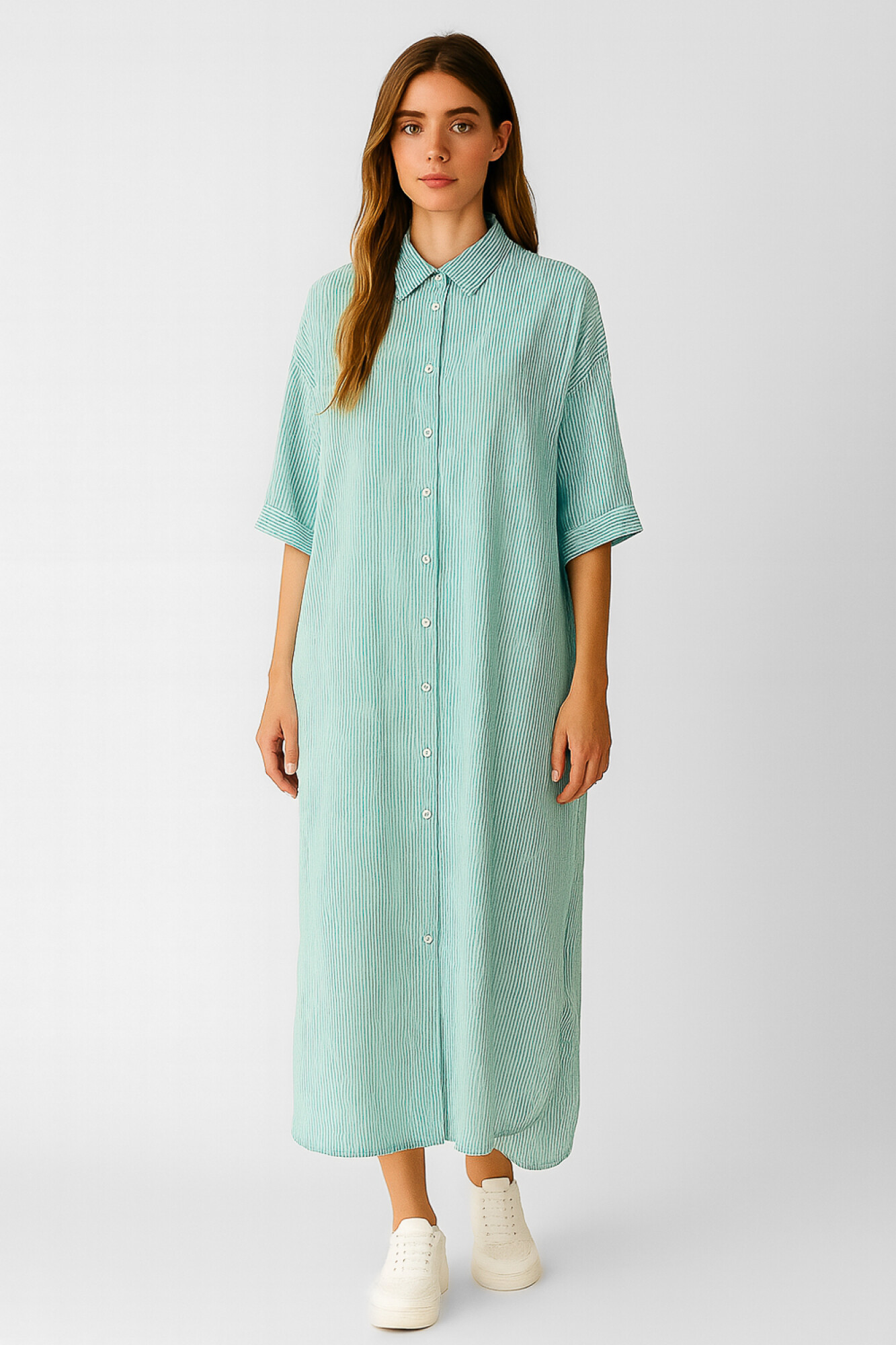Nuevos Recibilo en  Tunica algodon, aop, rayas, holgado, con botones y cuello camisa