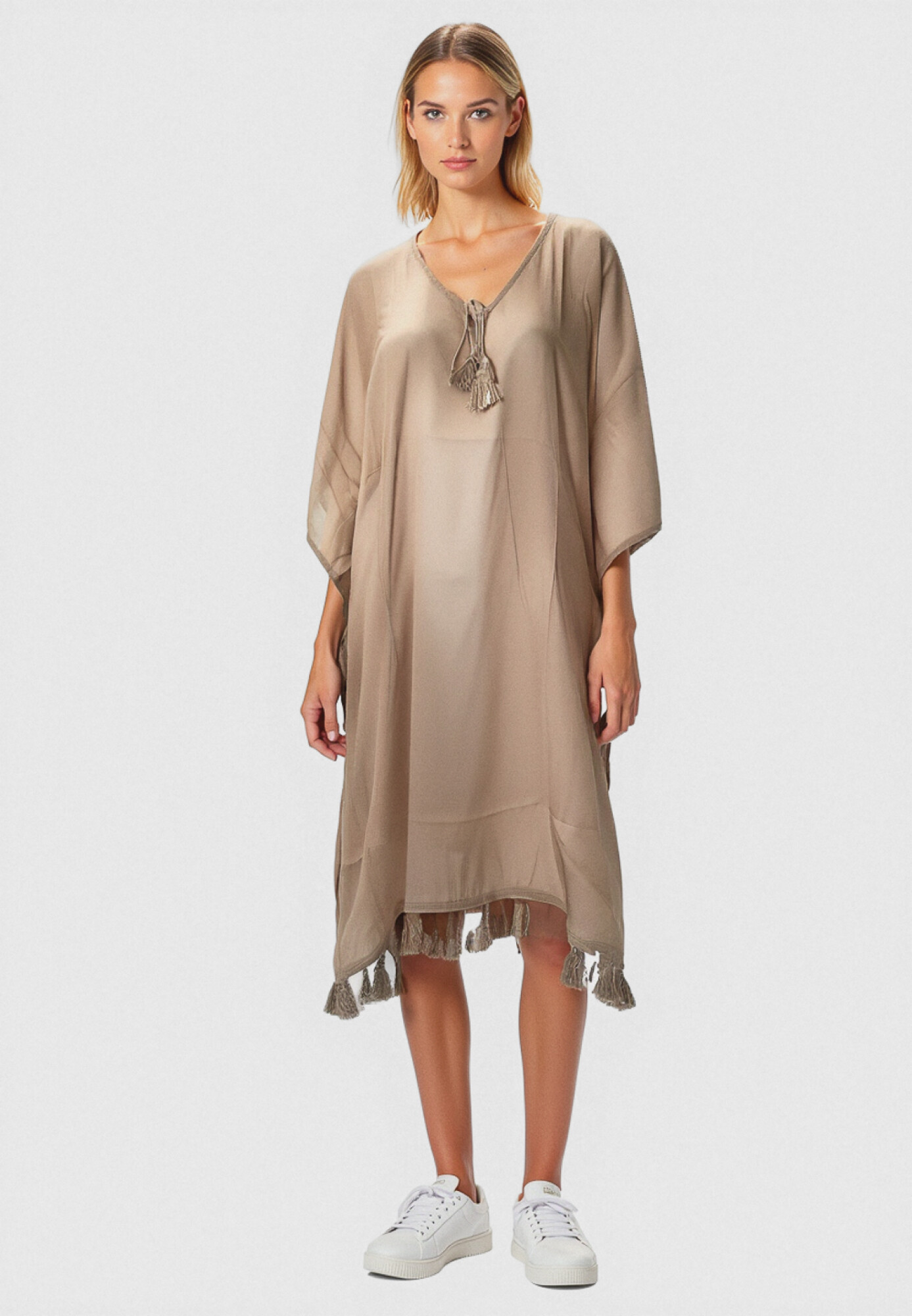 Nuevos Recibilo en Tunica algodon, holgado, con borla, con lace y cuello profundo
