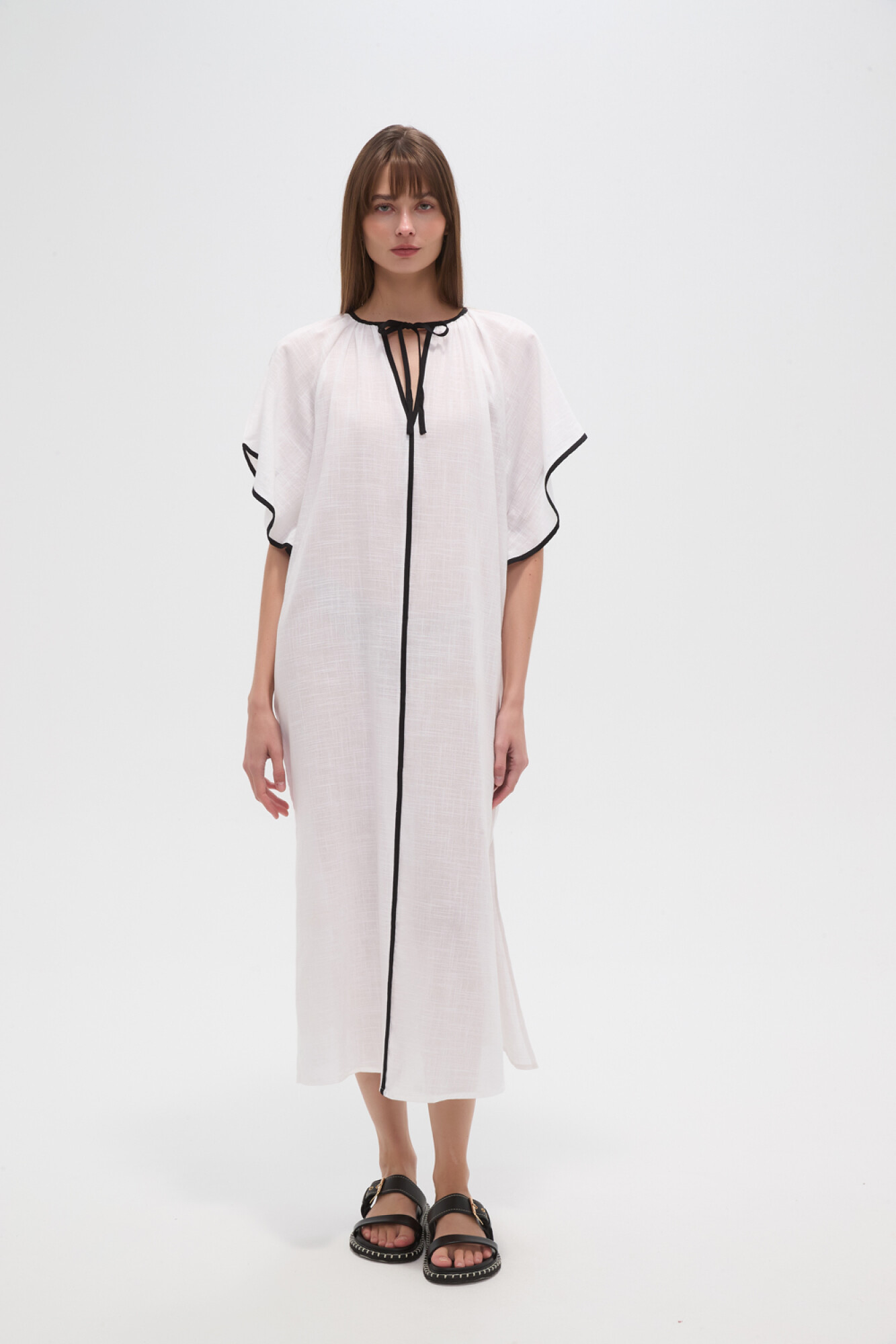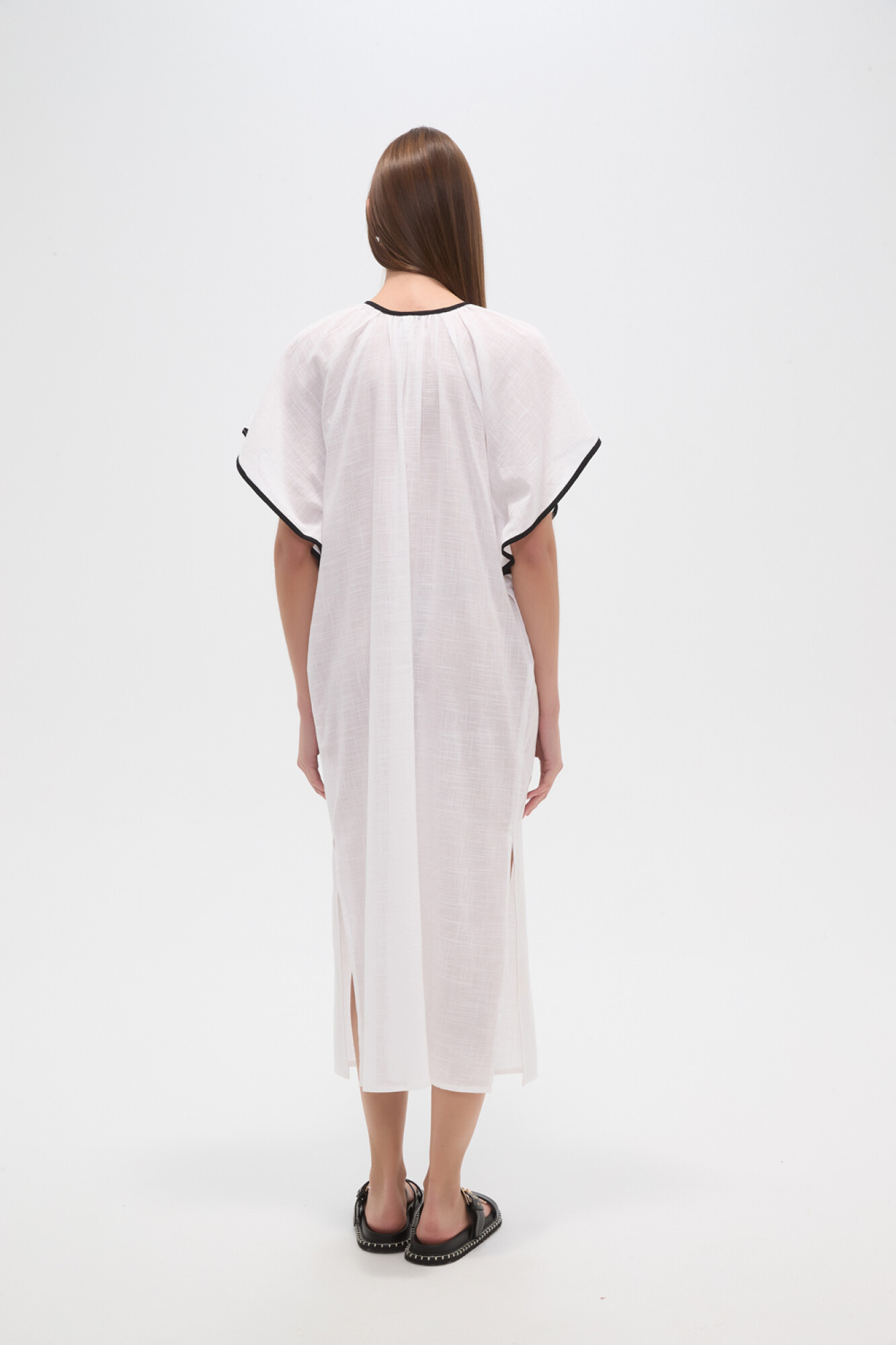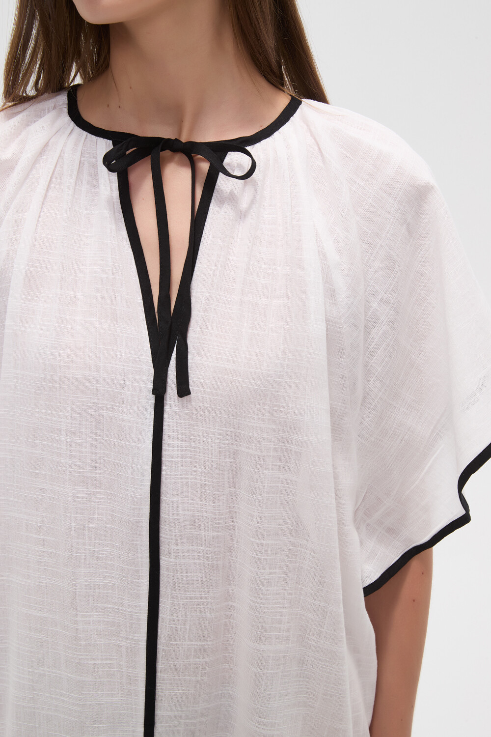 $ 899 Nuevos Tunica manga corta de algodon, ancho, con cordon y cuello en v
