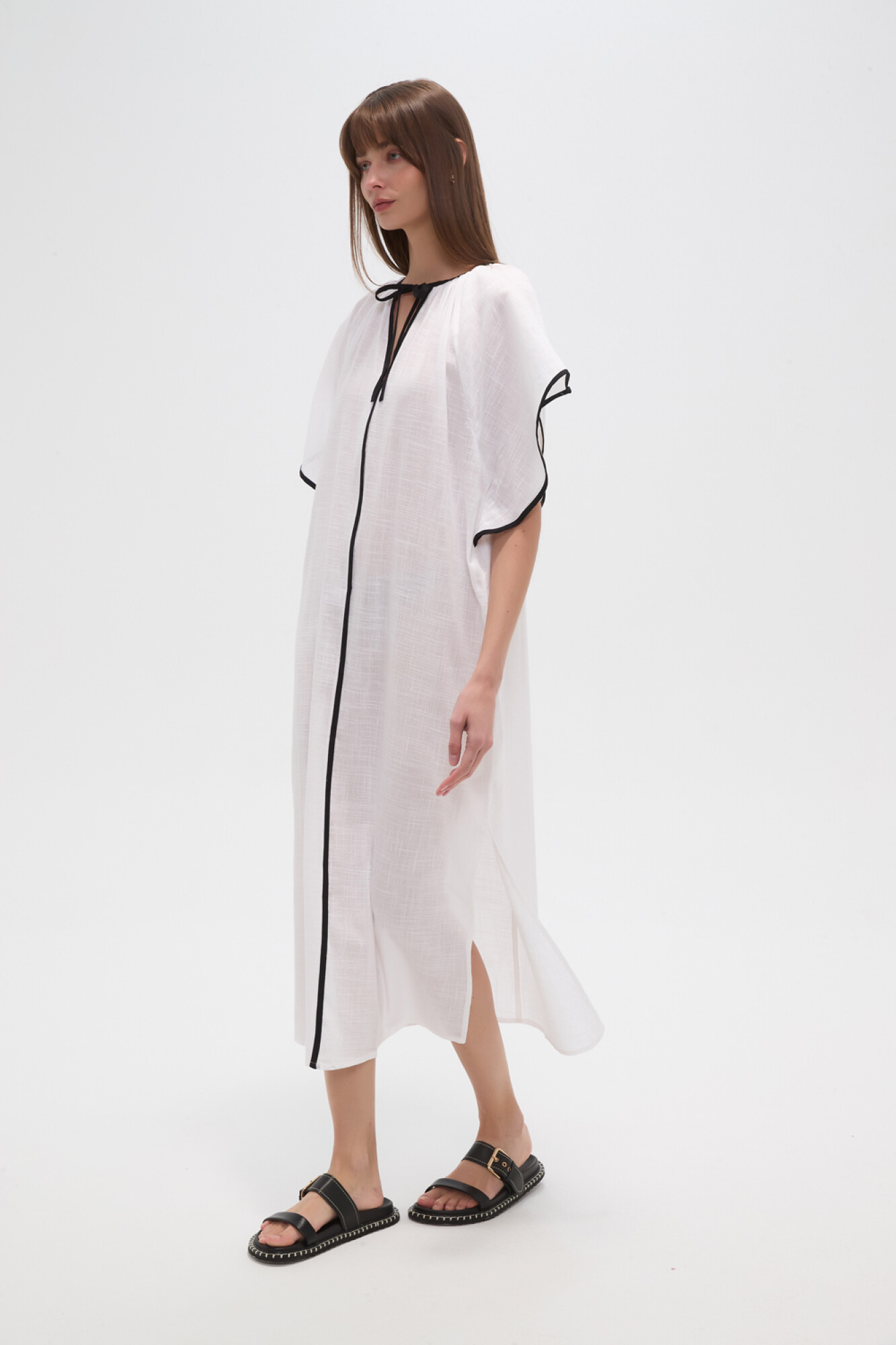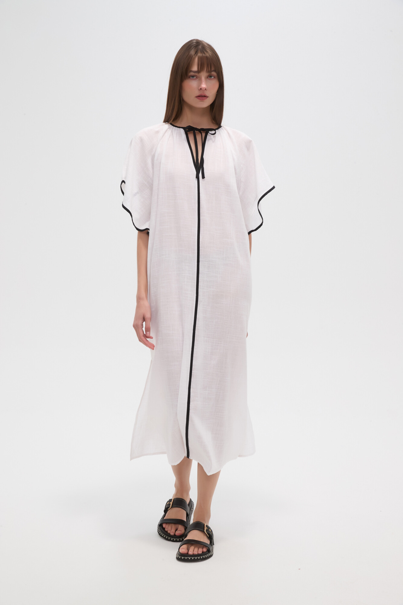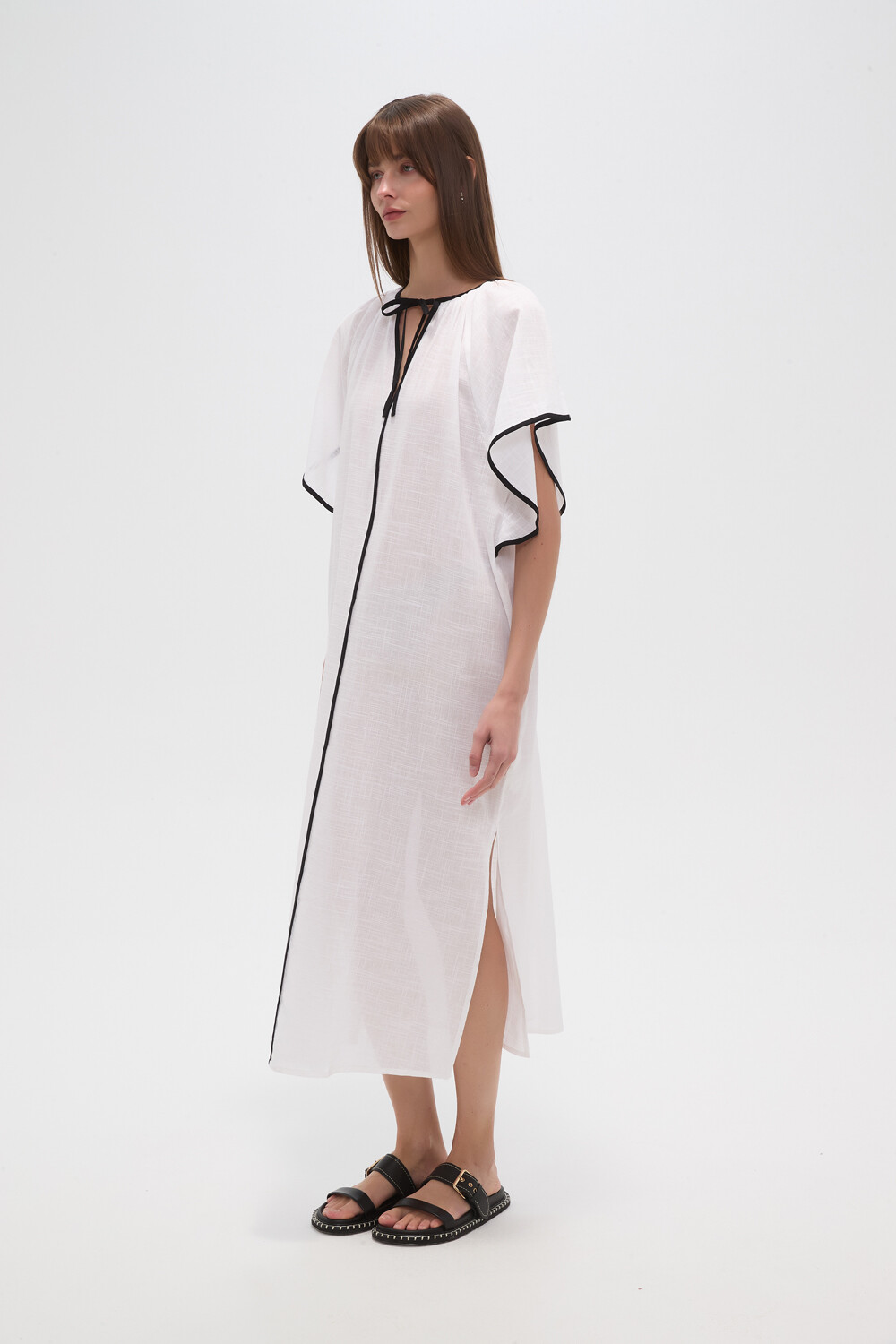 $ 899 Nuevos Tunica manga corta de algodon, ancho, con cordon y cuello en v