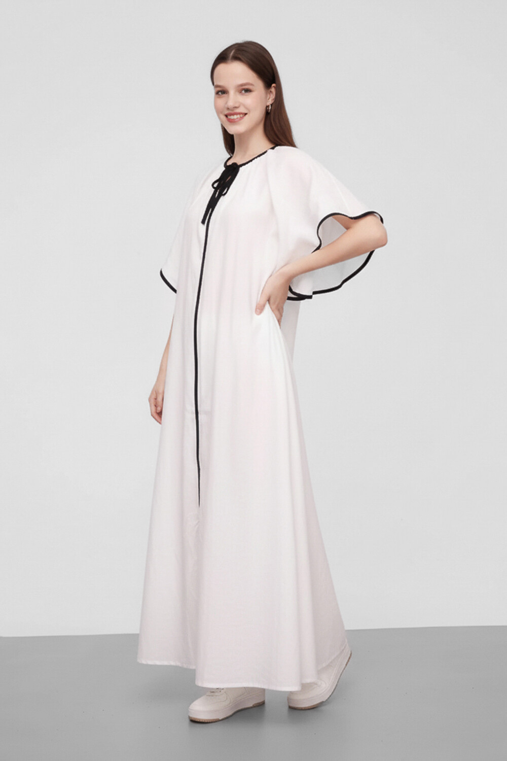 $ 1.087 Nuevos Tunica manga corta de algodon, ancho, con cordon y cuello en v