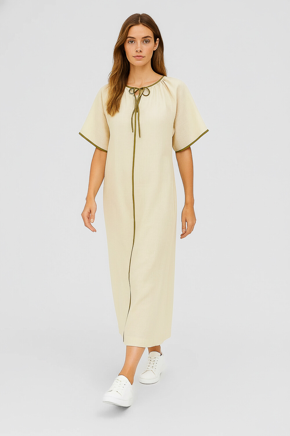 Nuevos Recibilo en Tunica manga corta de algodon, ancho, con cordon y cuello en v