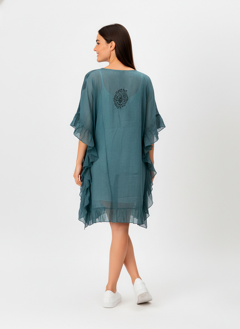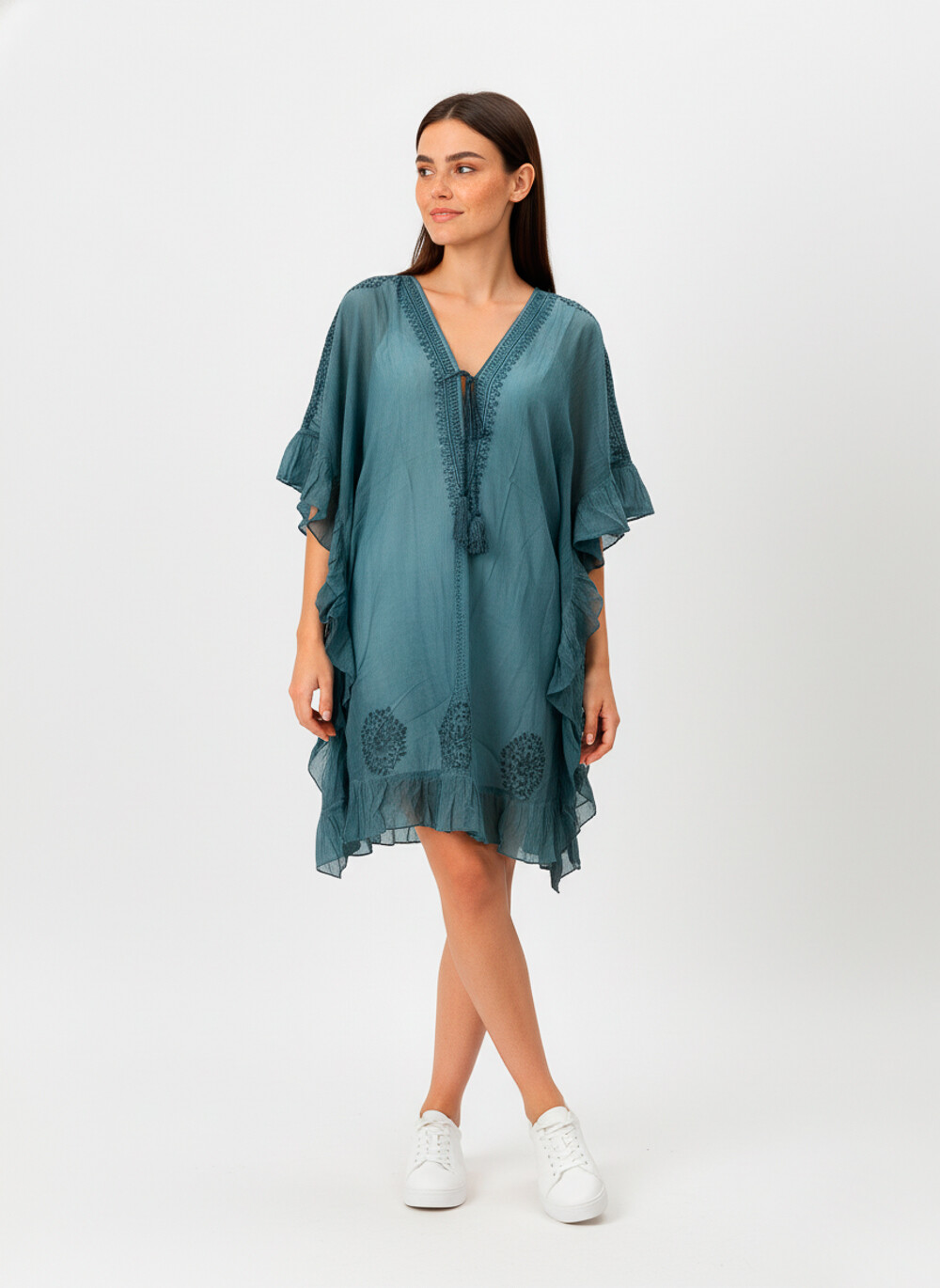 $ 731     Nuevos  Tunica algodon, wash, bordado, volados, holgado, con borla, con lace y cuello profundo