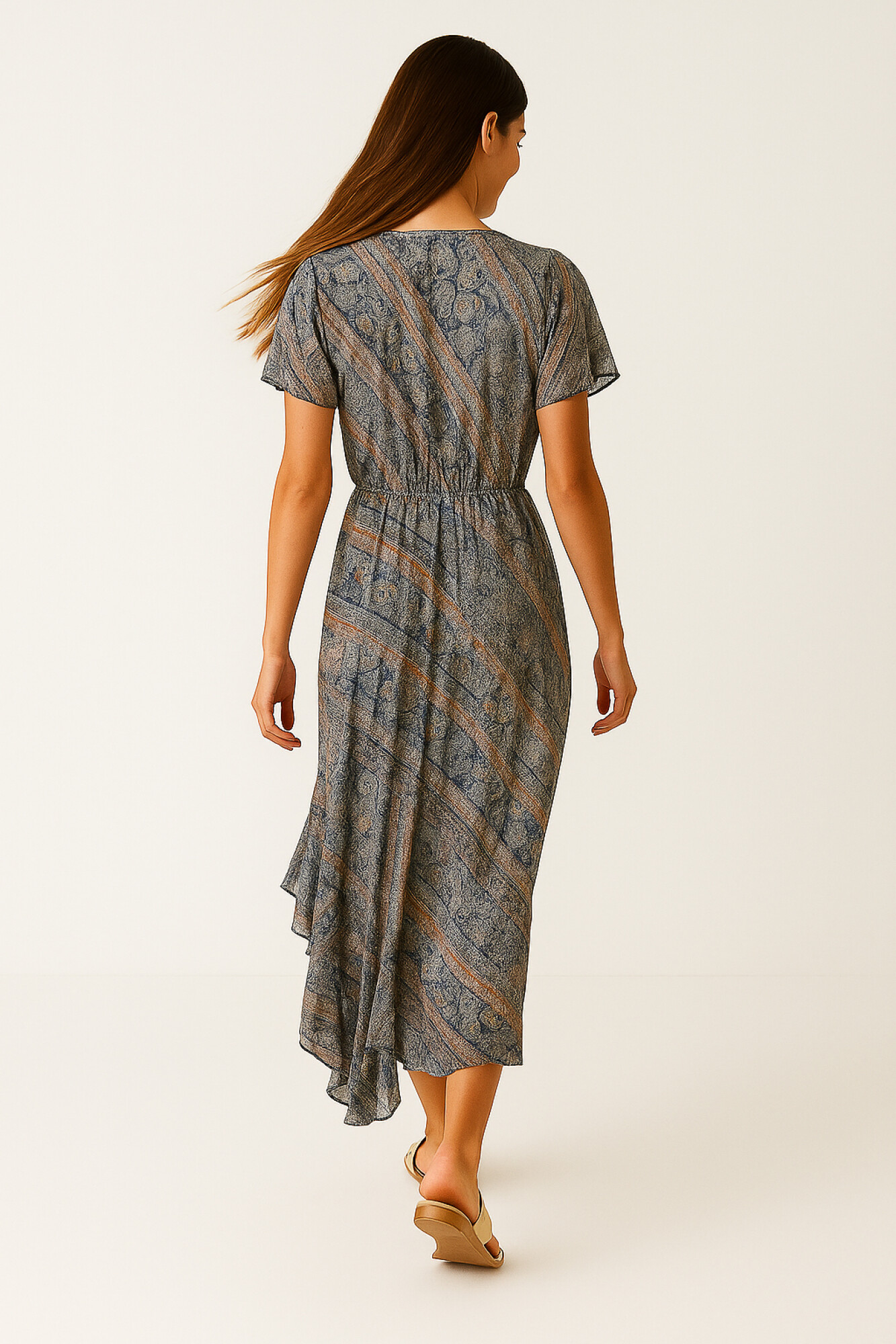 Nuevos Recibilo en Vestido manga corta de poliester, aop, volados, ancho, con lazo y cuello en v