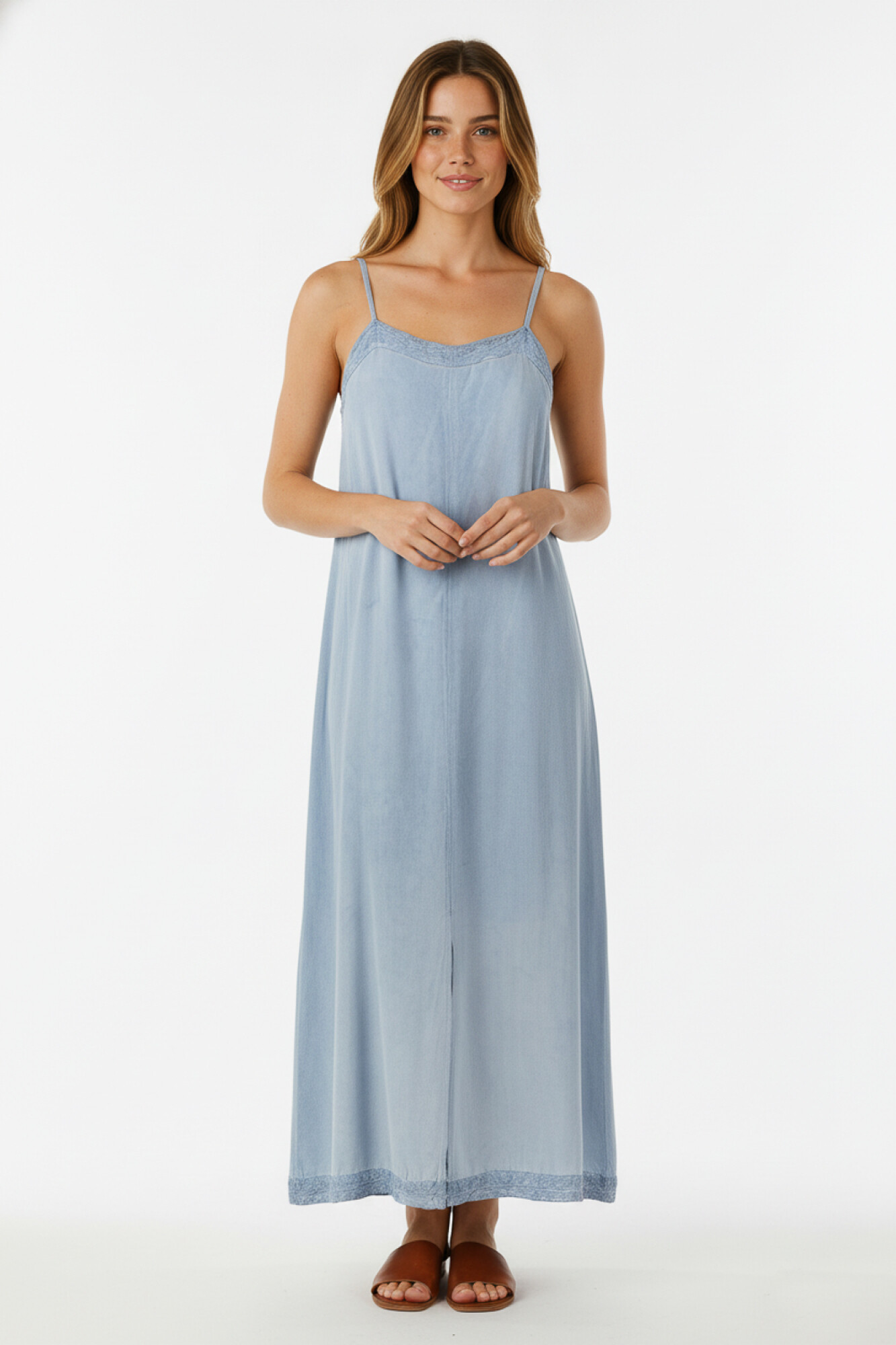 $ 951 Nuevos Recibilo en Vestido largo sin mangas de viscosa, wash, bordado, holgado y cuello profundo