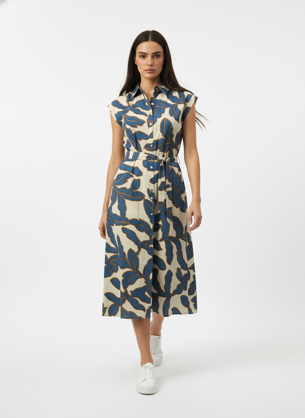 $ 899 Nuevos Recibilo en Vestido largo manga corta de algodon, aop, estampado, con lazo y cuello camisa
