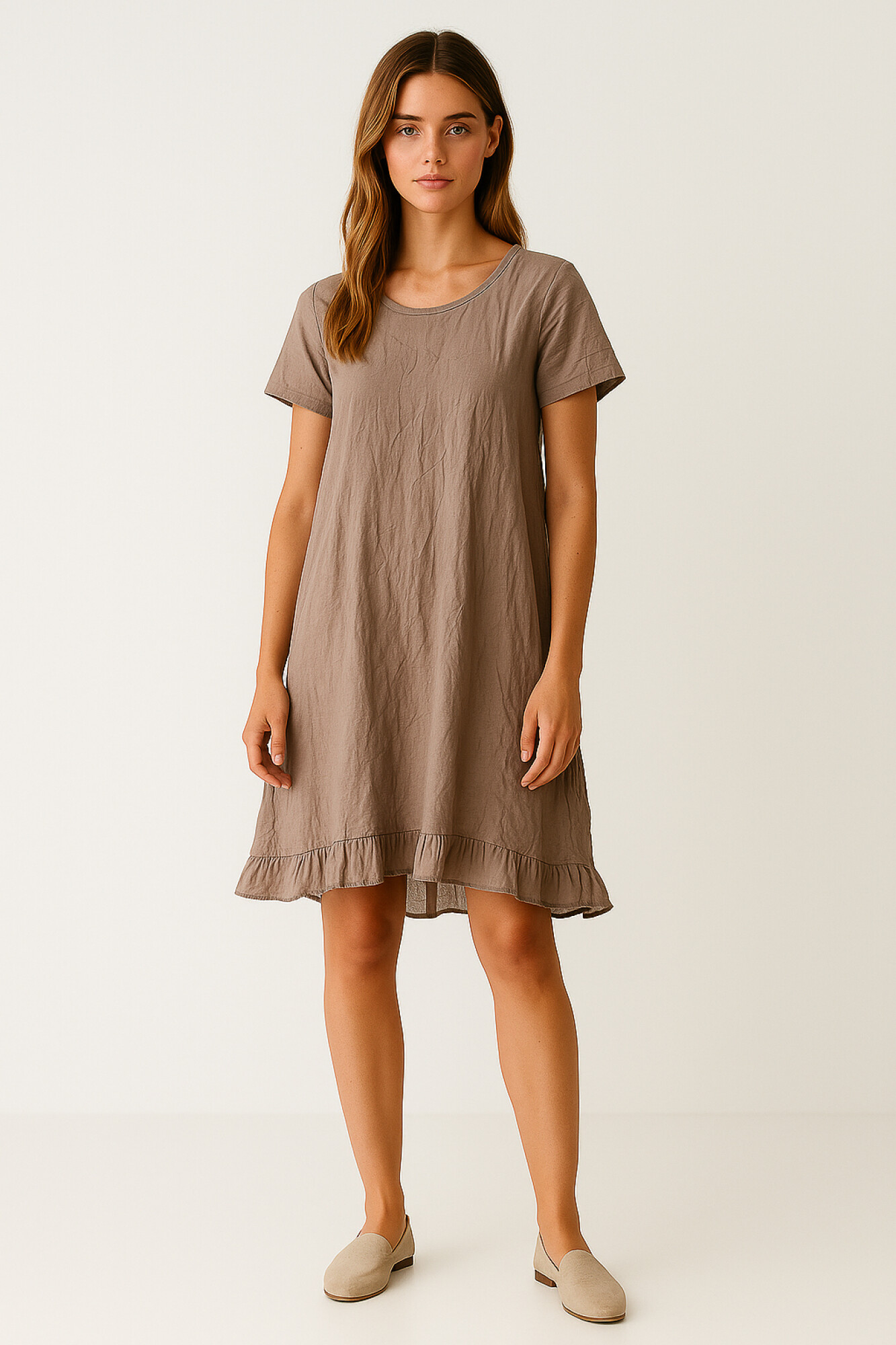 $ 679 Nuevos Vestido manga corta de algodon, wash, volados, holgado y cuello redondo