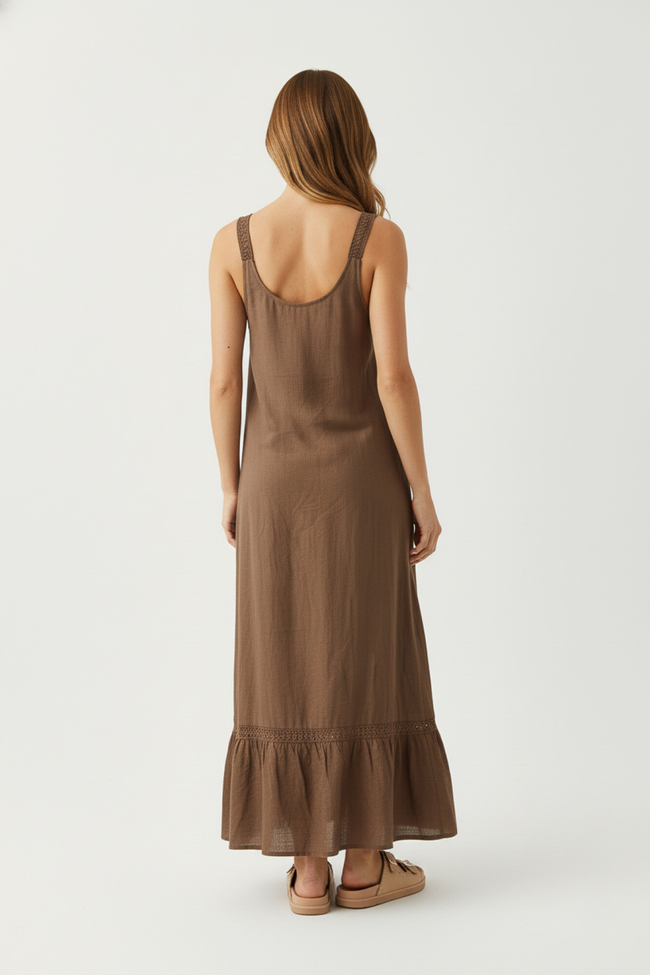 Nuevos Recibilo en Vestido largo sin mangas de algodon, con botones, con cinta y cuello redondo