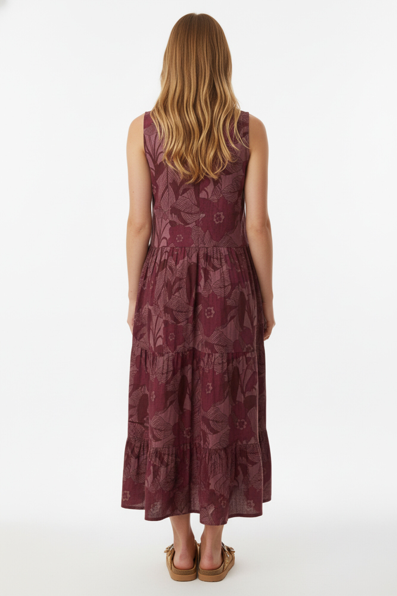 Nuevos Recibilo en Vestido largo sin mangas de algodon, aop, estampado, holgado, con botones y cuello camisa