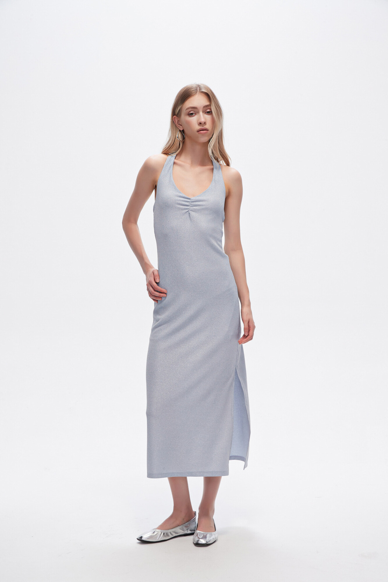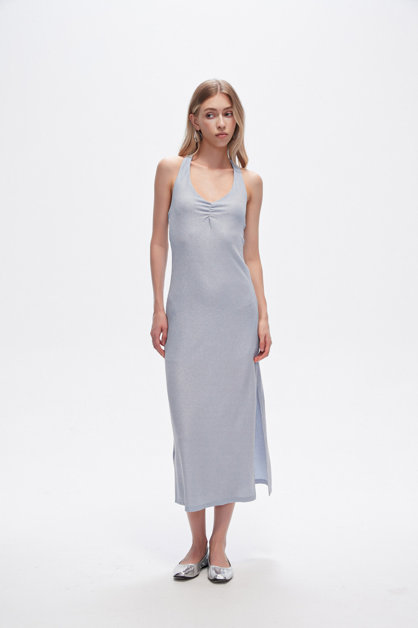 Nuevos Recibilo en Vestido bretel ancho de poliester, frunces, al cuerpo y cuello profundo