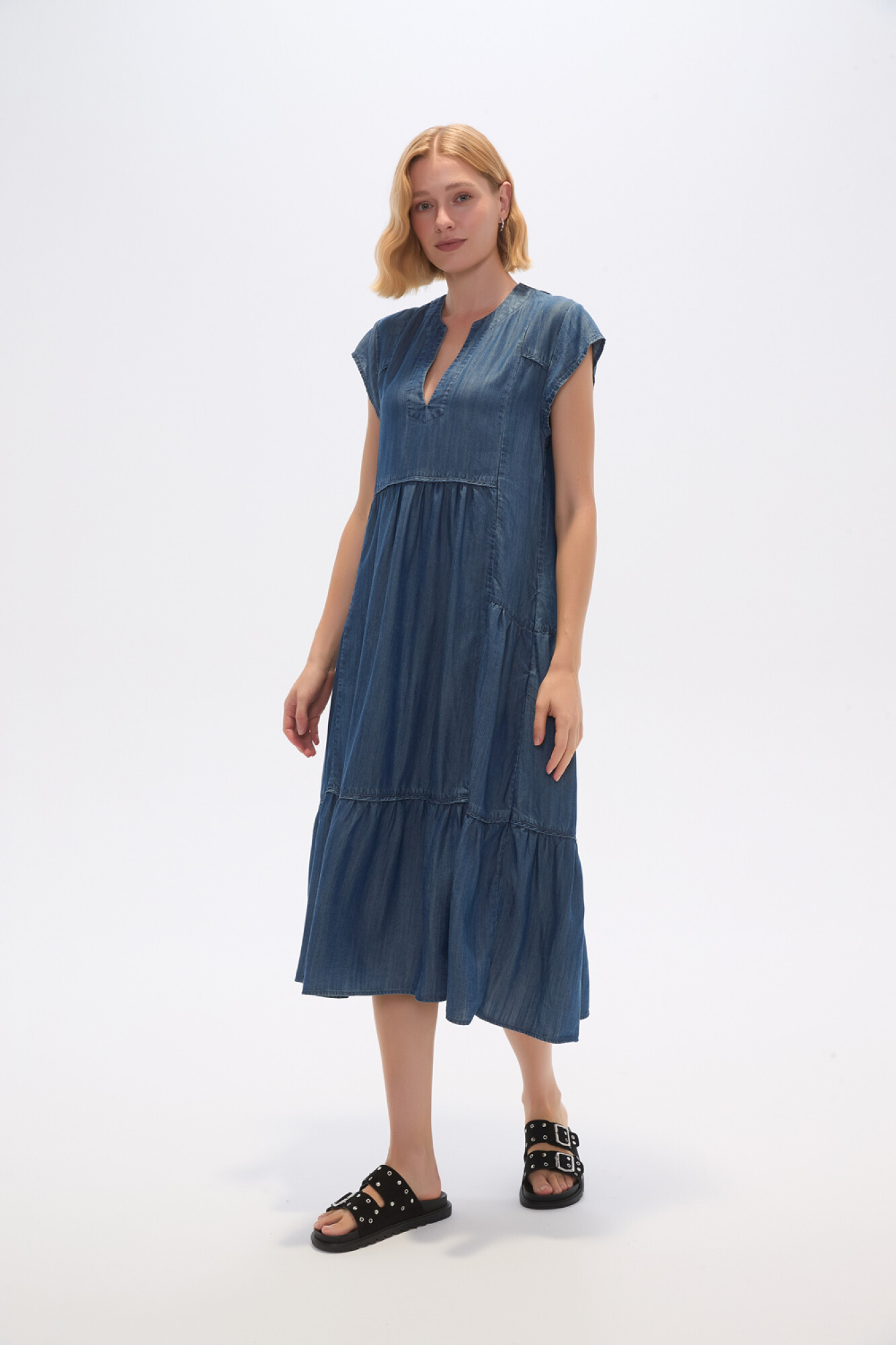 Nuevos Recibilo en Vestido manga corta de lyocell, volados y cuello en v