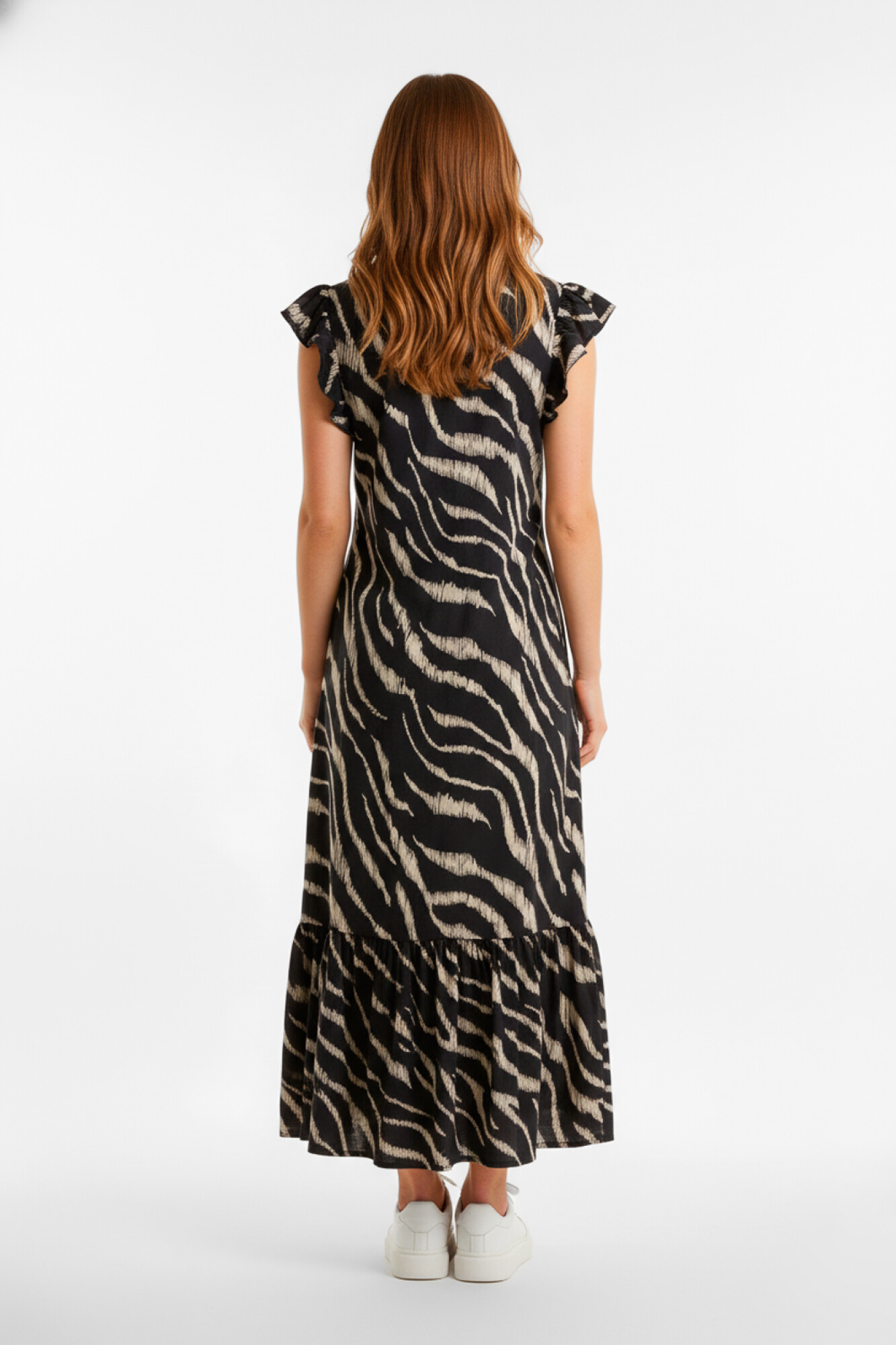 $ 951 Nuevos Recibilo en Vestido manga corta de viscosa, aop, estampado, holgado y cuello en v