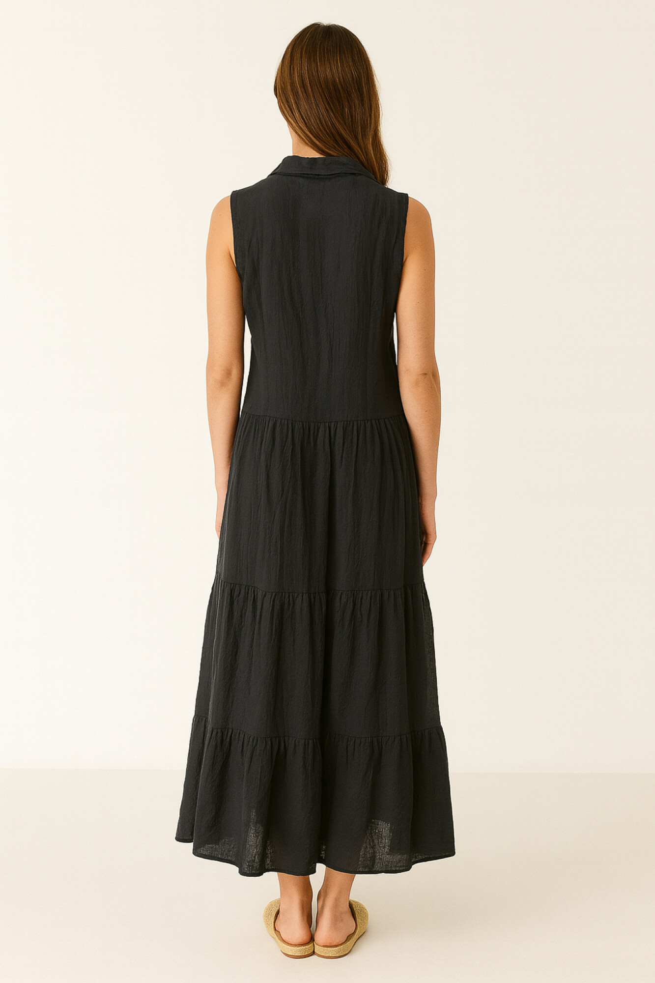 Nuevos Recibilo en  Vestido largo sin mangas de algodon, broderie, con botones y cuello camisa