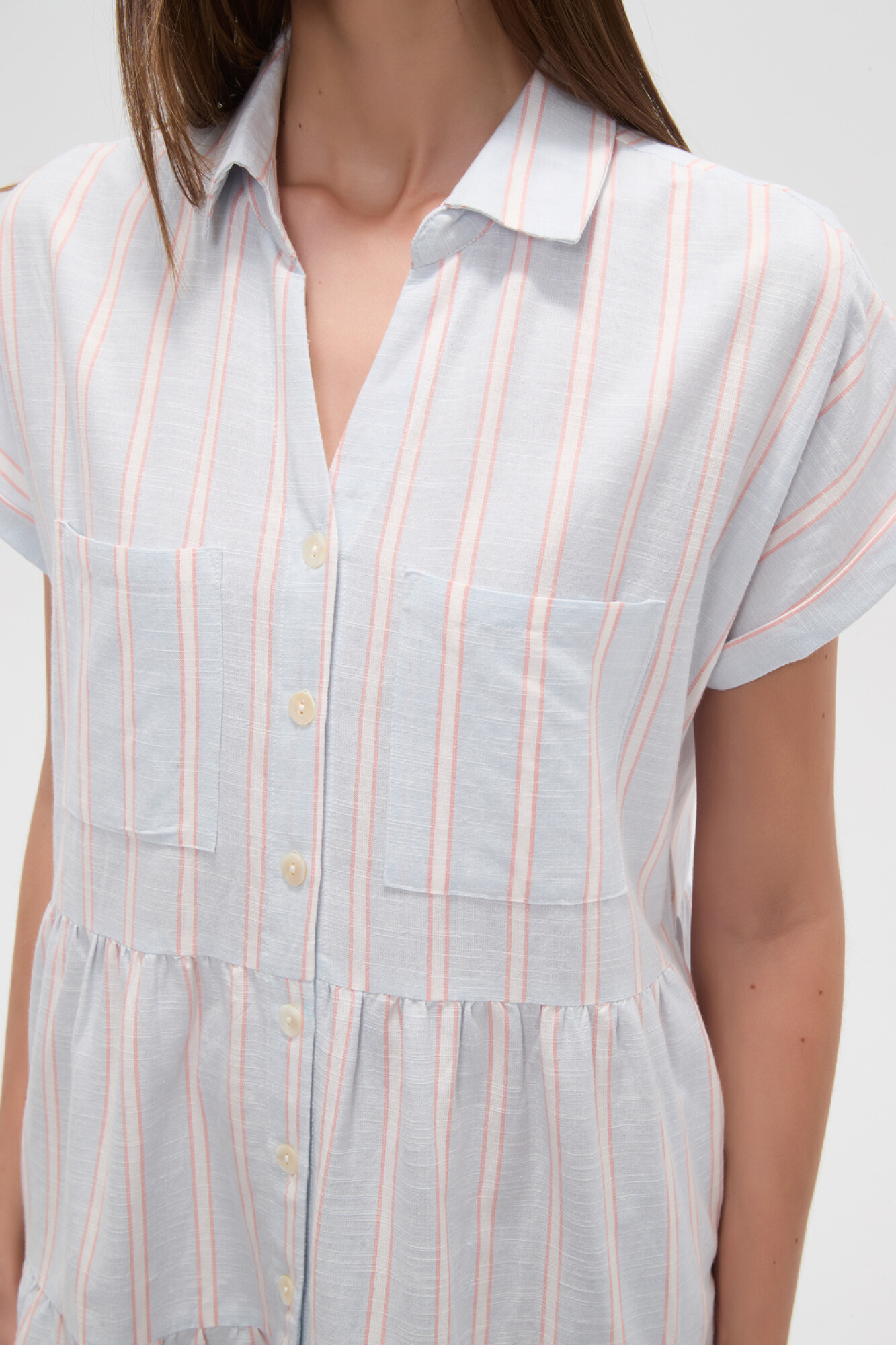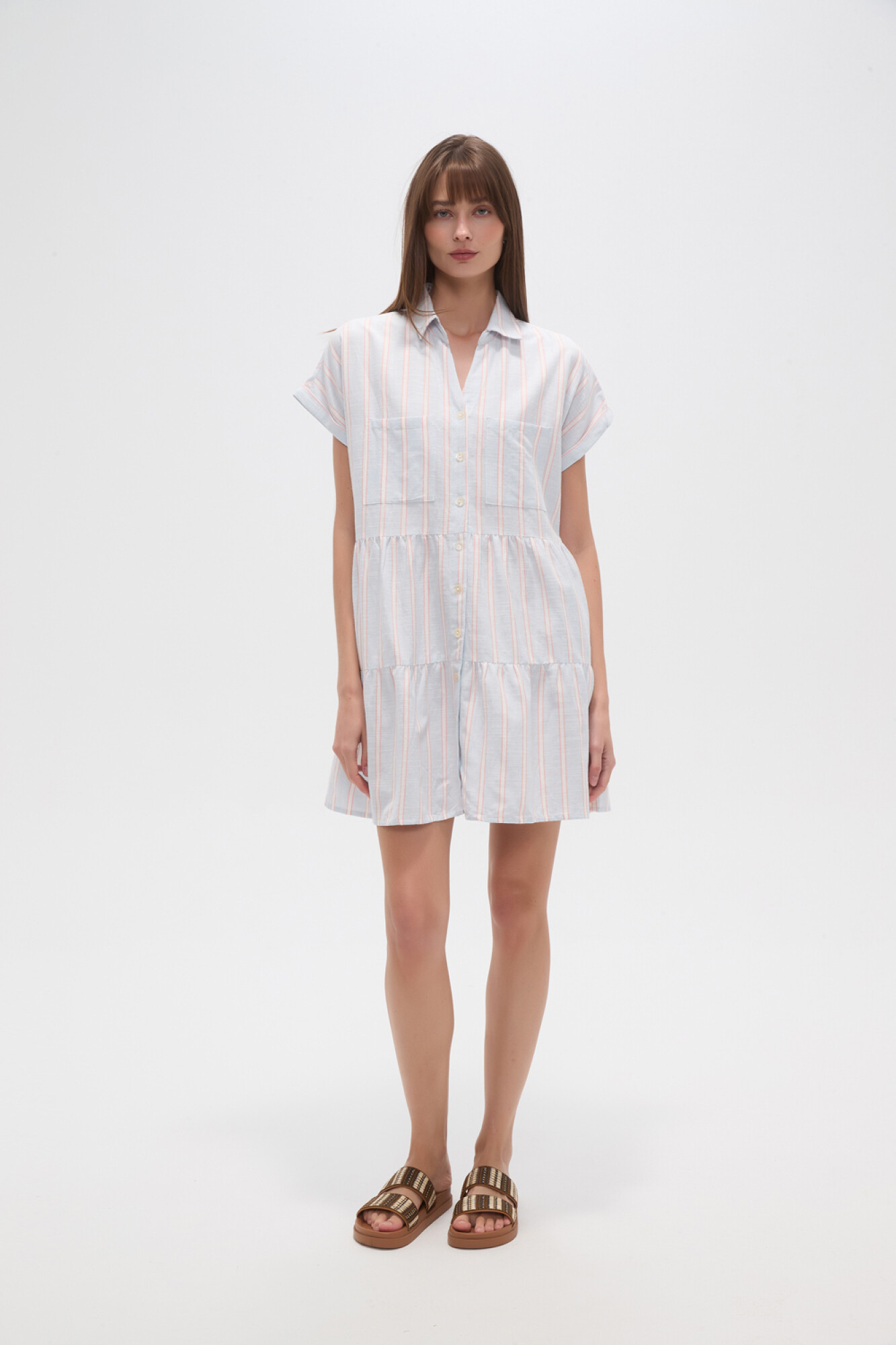 $ 899 Nuevos Recibilo en Vestido rodilla de viscosa, rayas, volados, holgado, con botones y cuello camisa