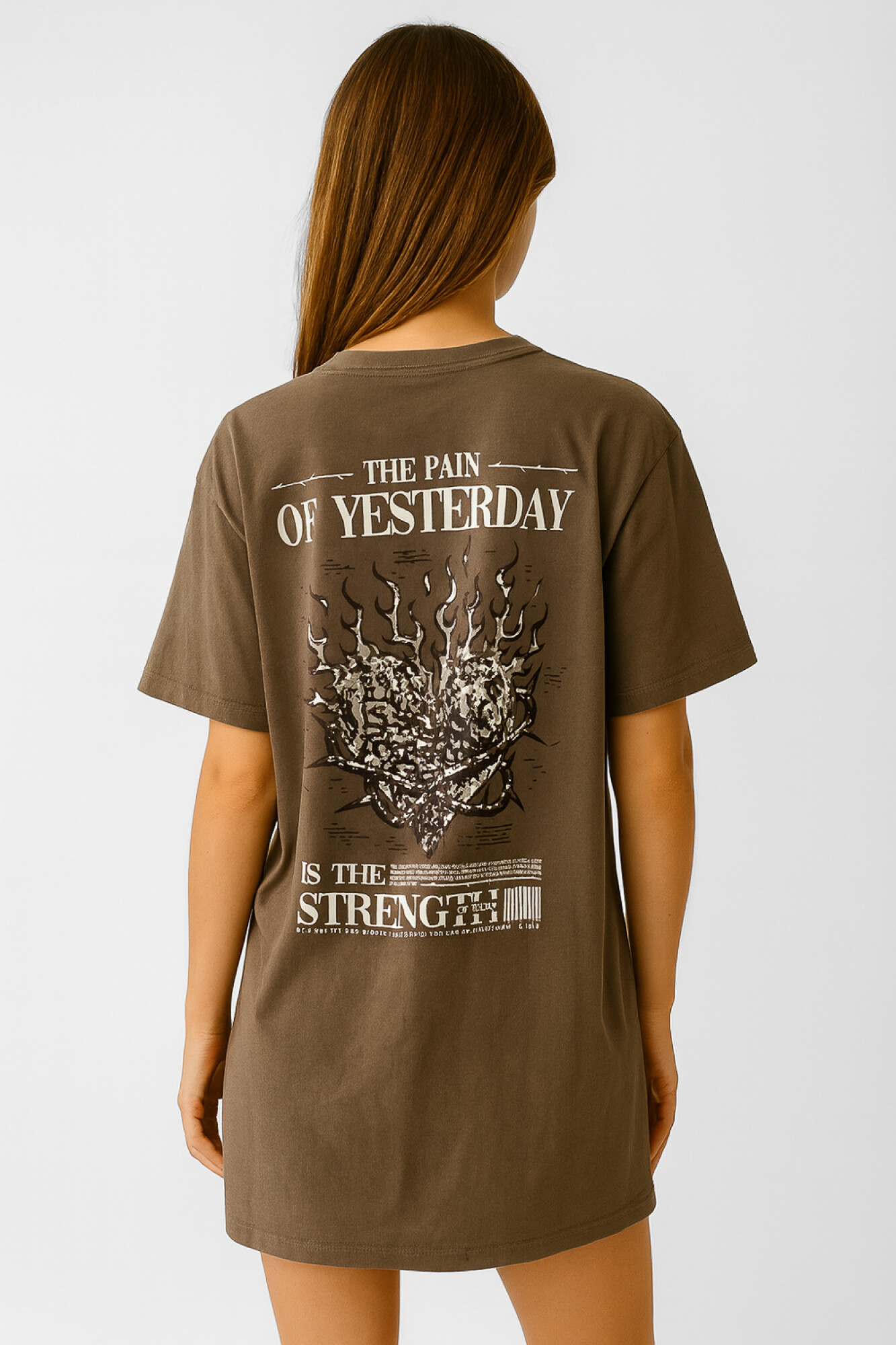 $ 393 Nuevos Recibilo en Vestido manga corta de algodon, chest print, estampado, holgado y cuello a la base