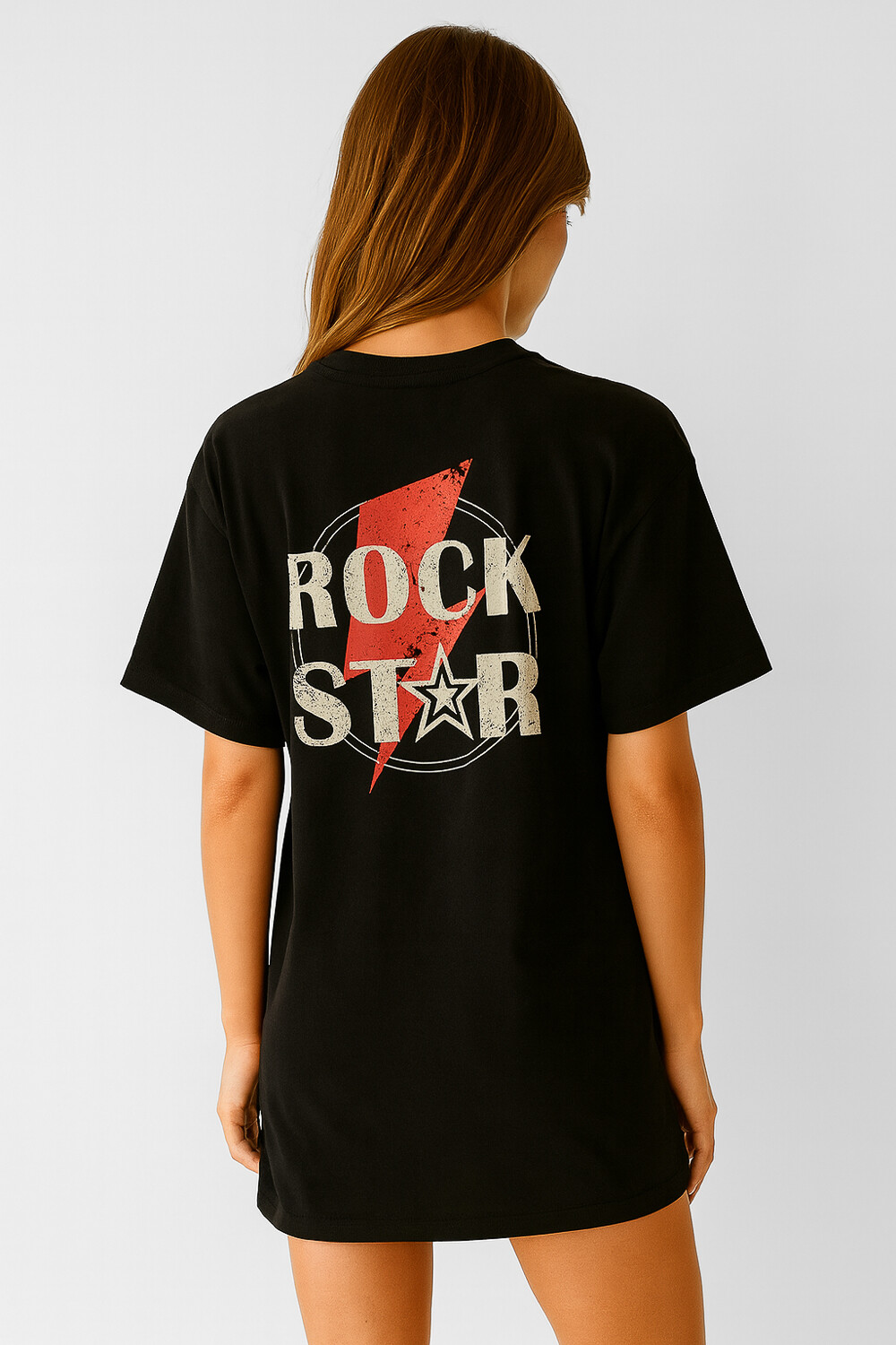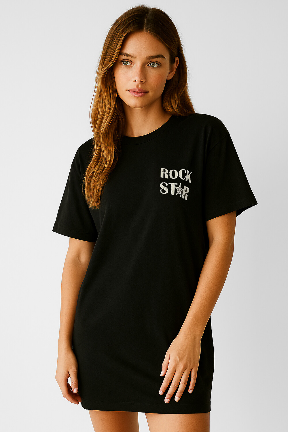 $ 393 Nuevos Recibilo en Vestido manga corta de algodon, chest print, estampado, holgado y cuello a la base