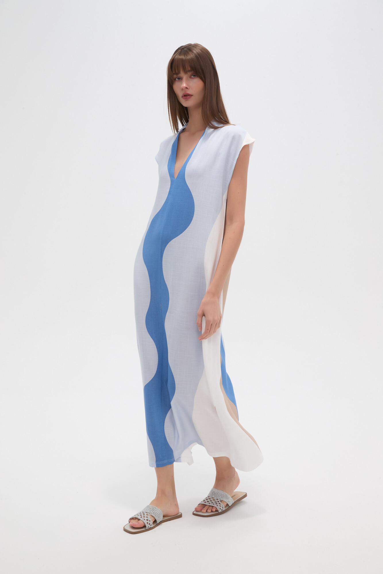 Nuevos Recibilo en Vestido manga corta de viscosa, aop, estampado, tajo, holgado y cuello en v