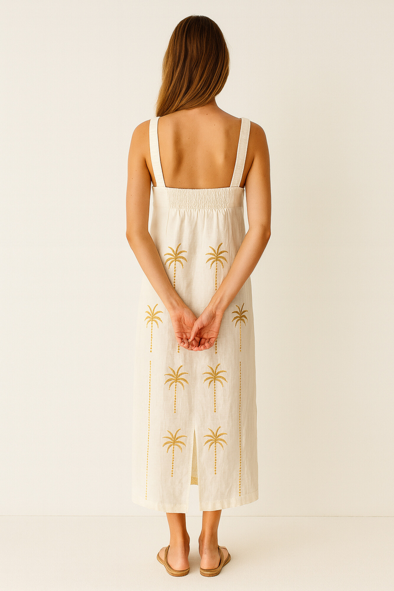 Nuevos Vestido viscosa, bordado, punto smock, al cuerpo, con elastico y cuello recto