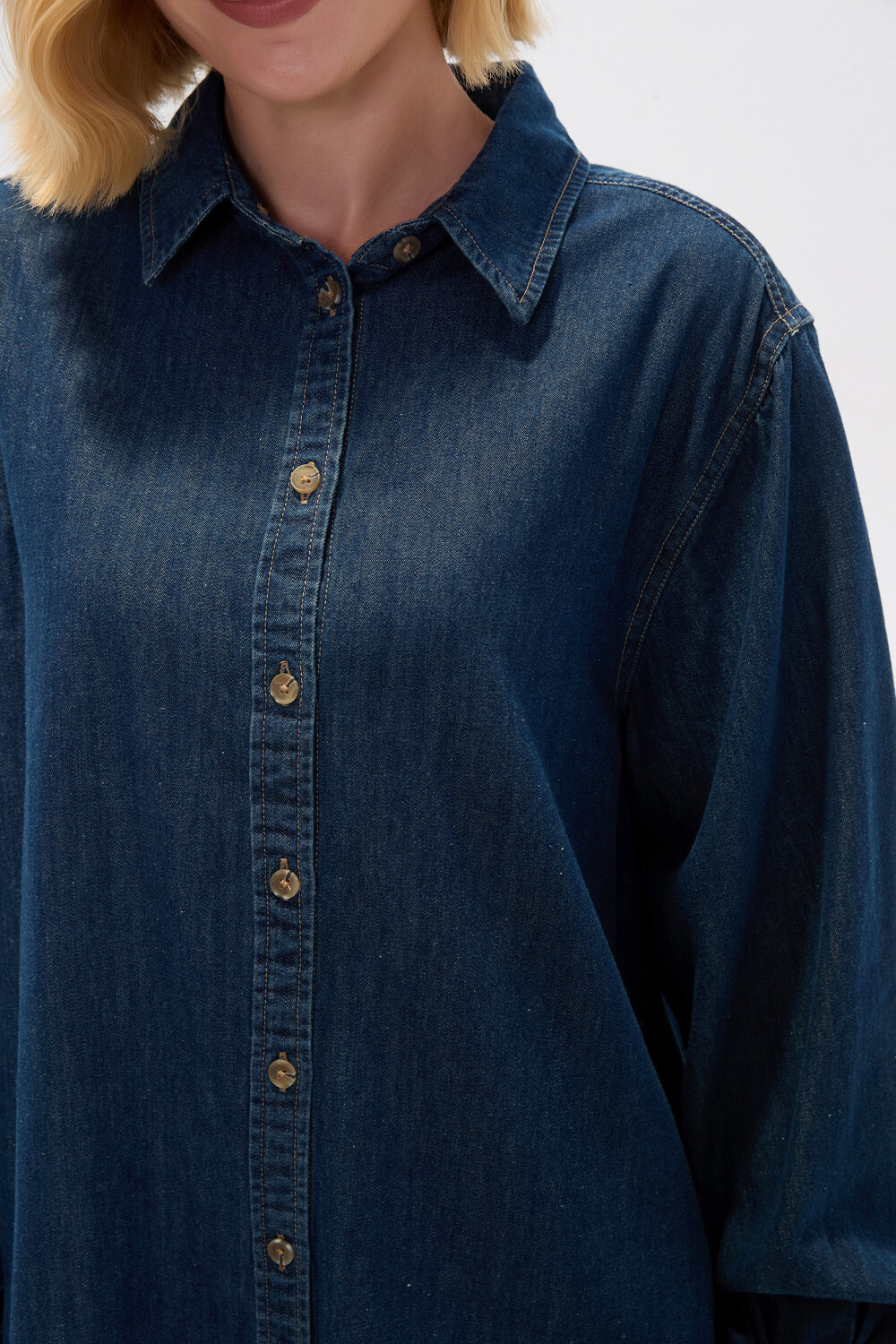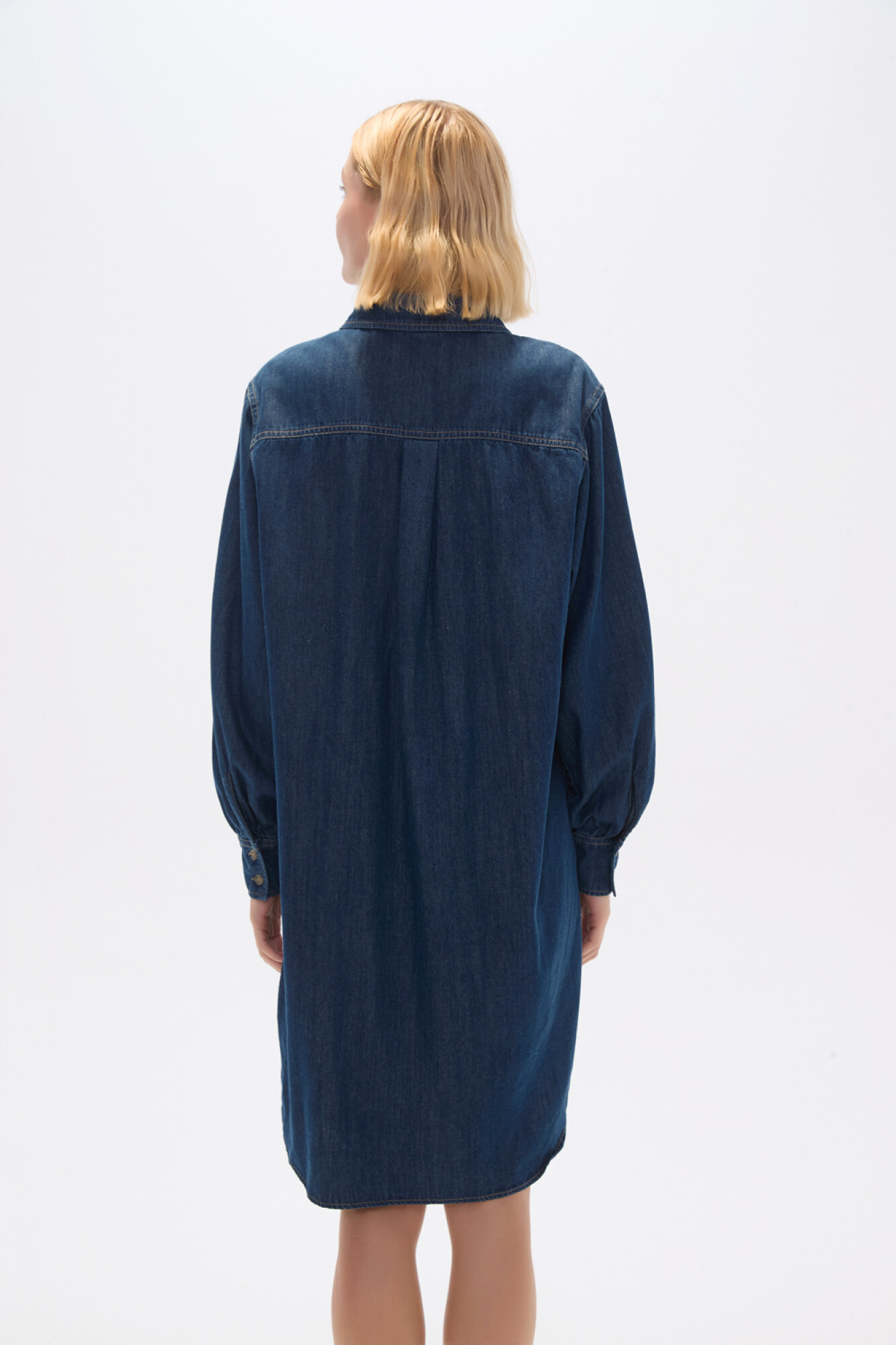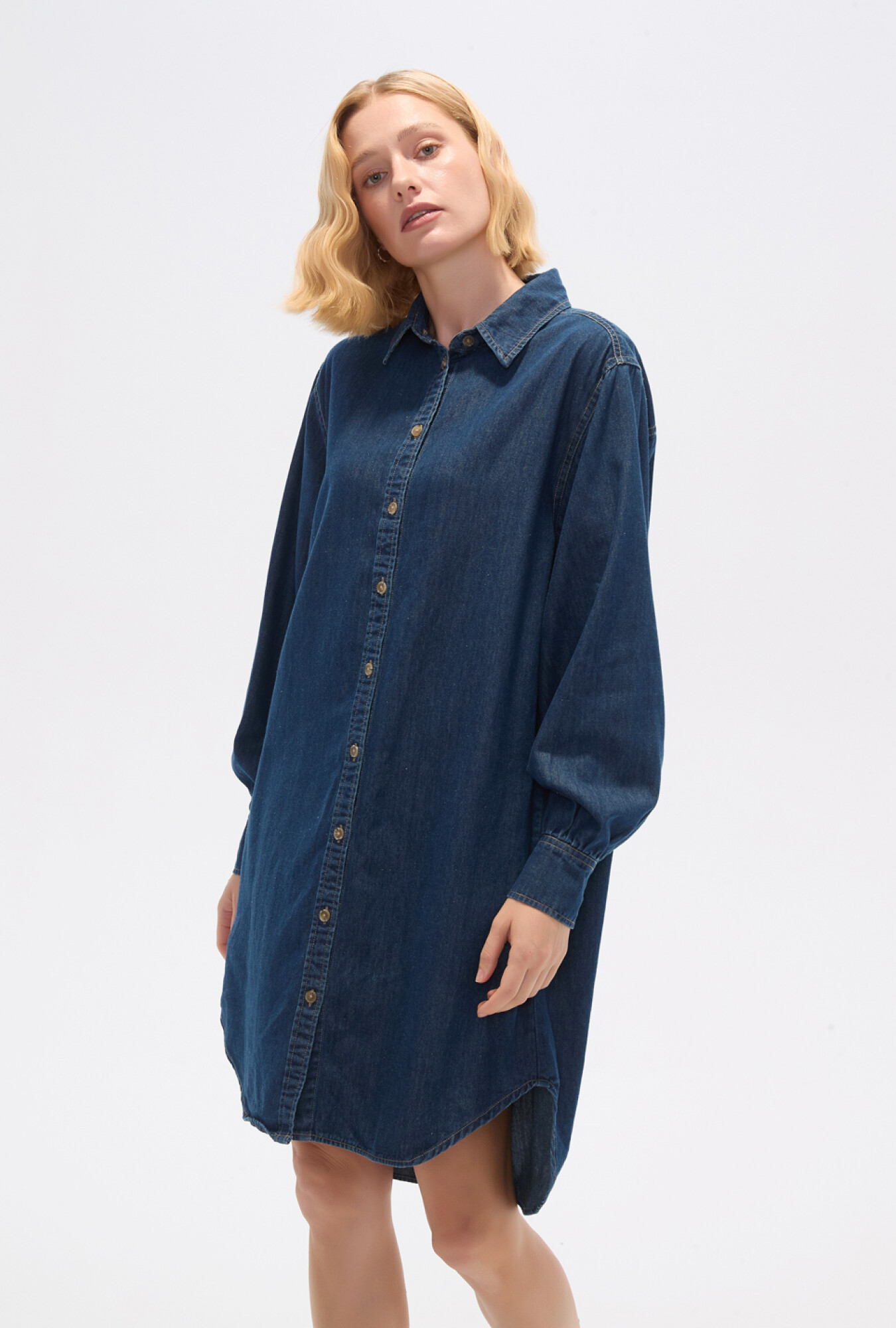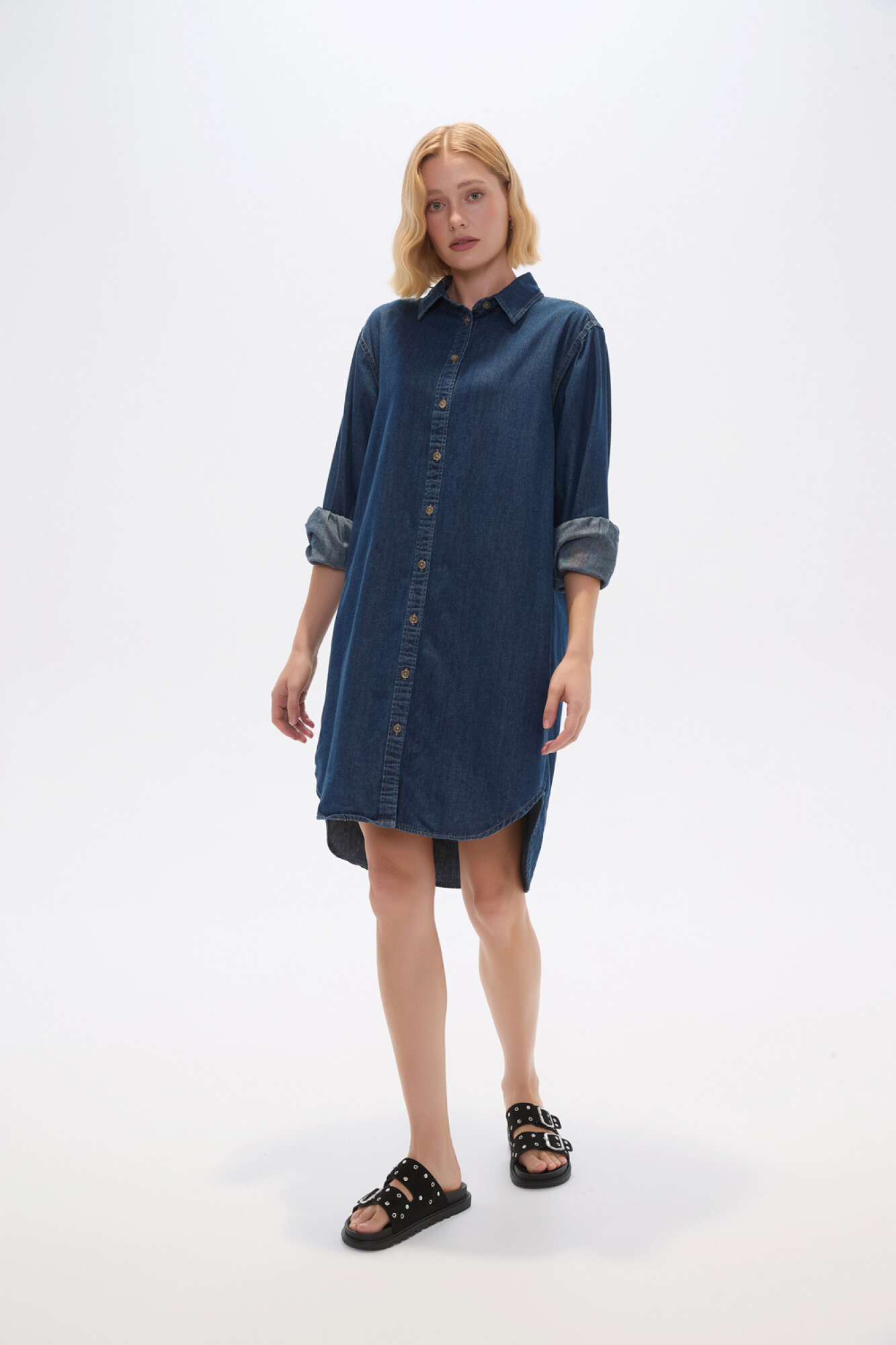 Nuevos Recibilo en Vestido manga larga de jean, holgado, con botones y cuello camisa