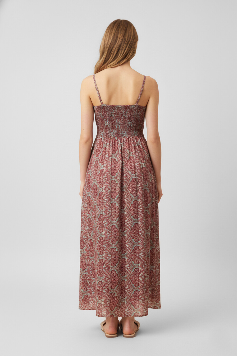 Nuevos Recibilo en Vestido largo de poliester, aop, punto smock, recto y cuello en v