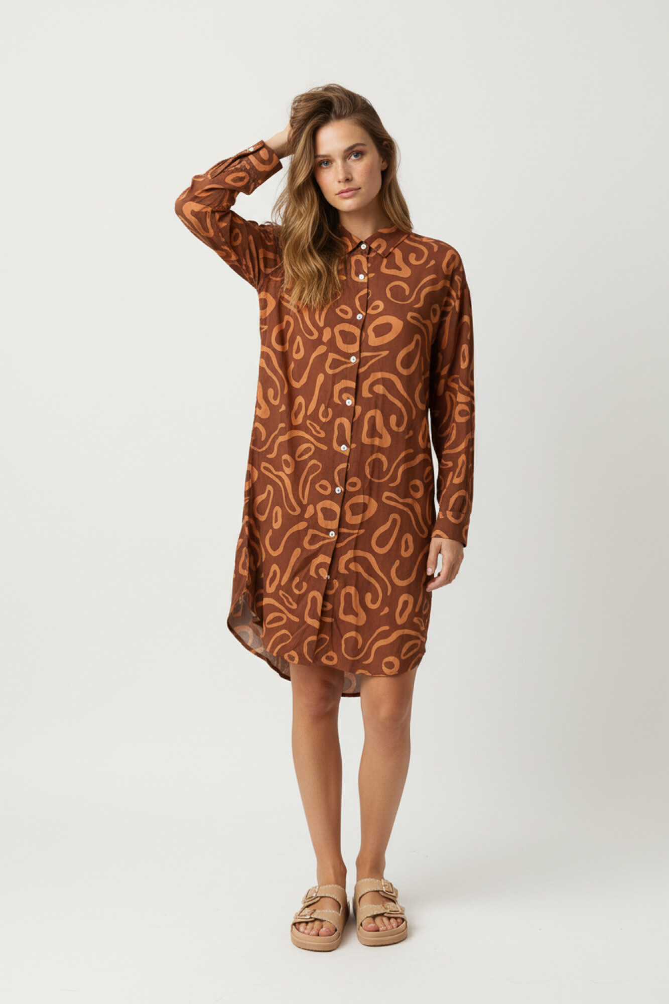 Nuevos Recibilo en Vestido manga larga, estampado, con botones y cuello camisa