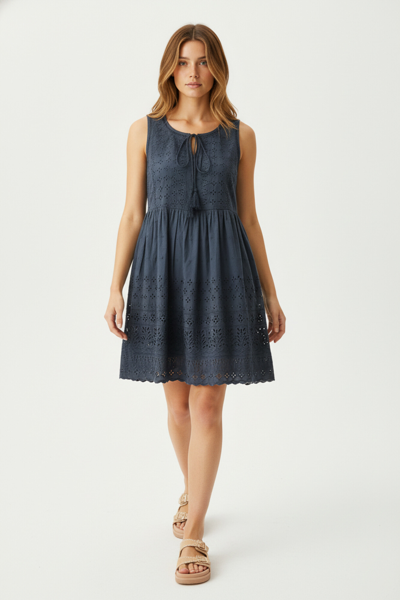 Nuevos Recibilo en Vestido mini sin mangas de algodon, bordado, con borla, con lazo, con cinta y cuello redondo