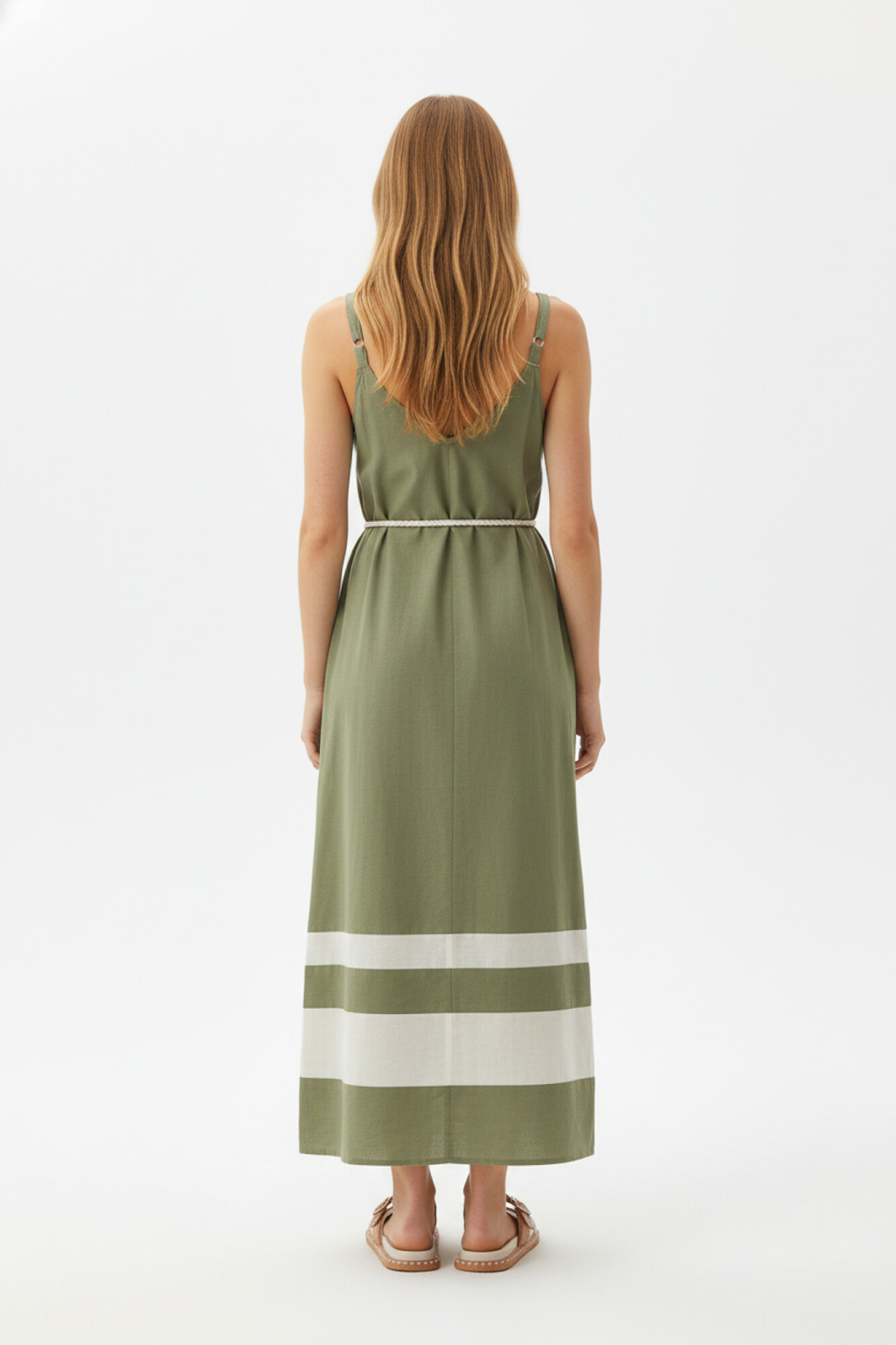 $ 899 Nuevos Vestido lino + viscosa, holgado, con cordon y cuello en v