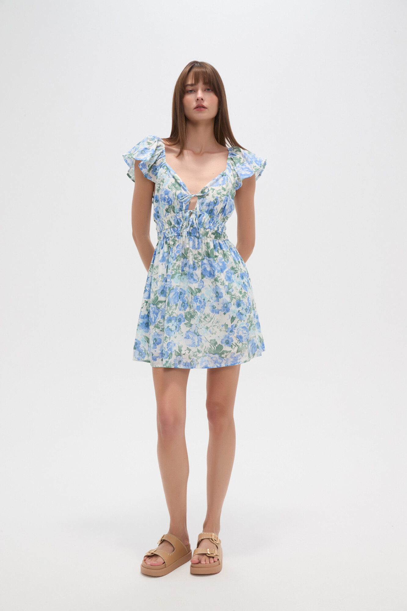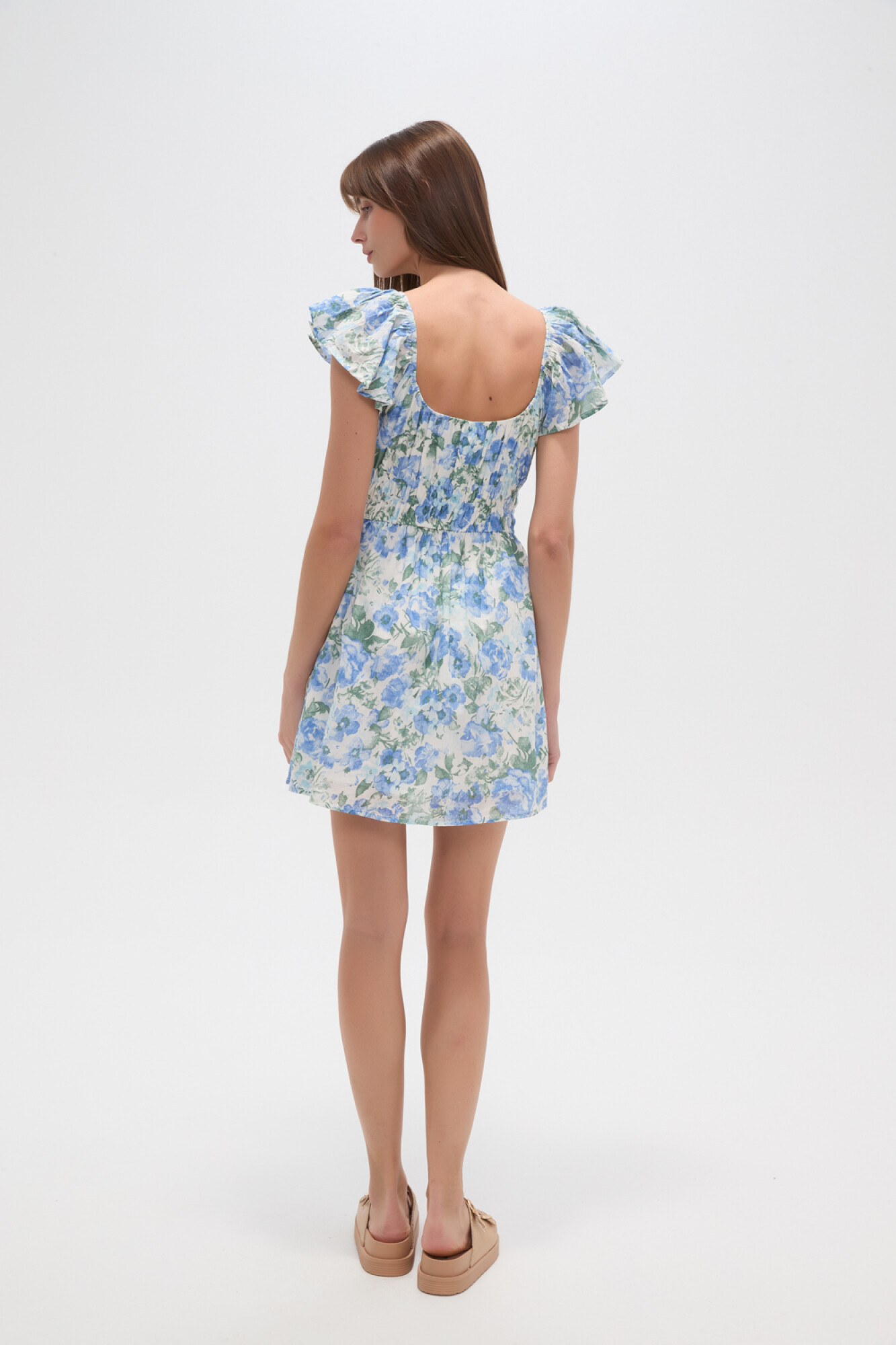 Nuevos Recibilo en Vestido mini de algodon, aop, estampado, volados, con cordon, con elastico y cuello en v