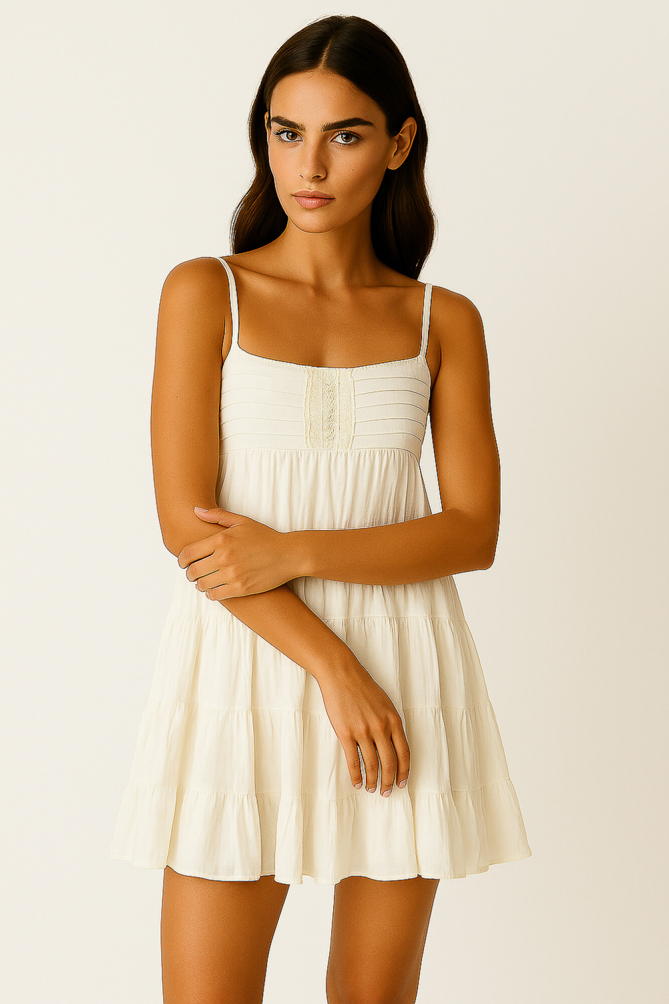 $ 787 Nuevos Recibilo en Vestido bretel fino de algodon, con elastico y cuello profundo
