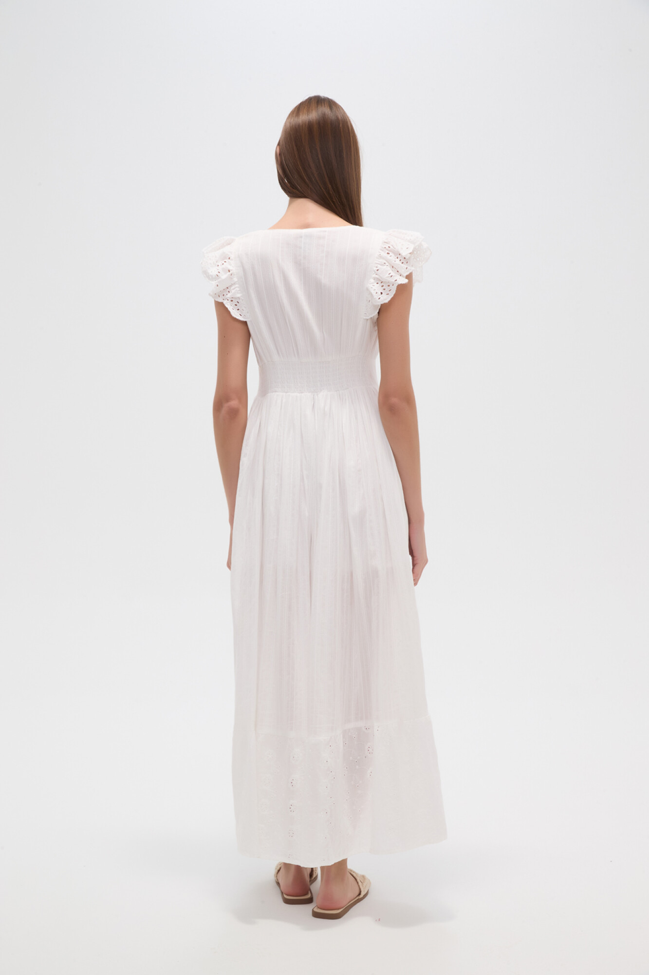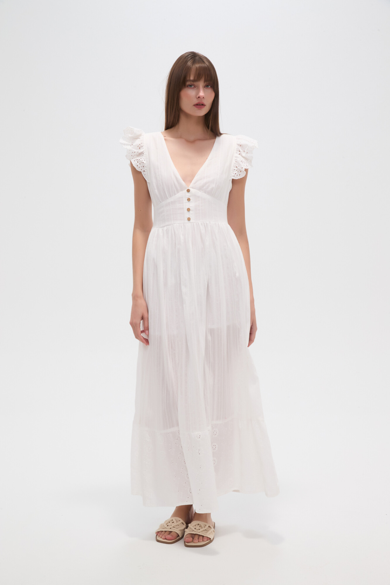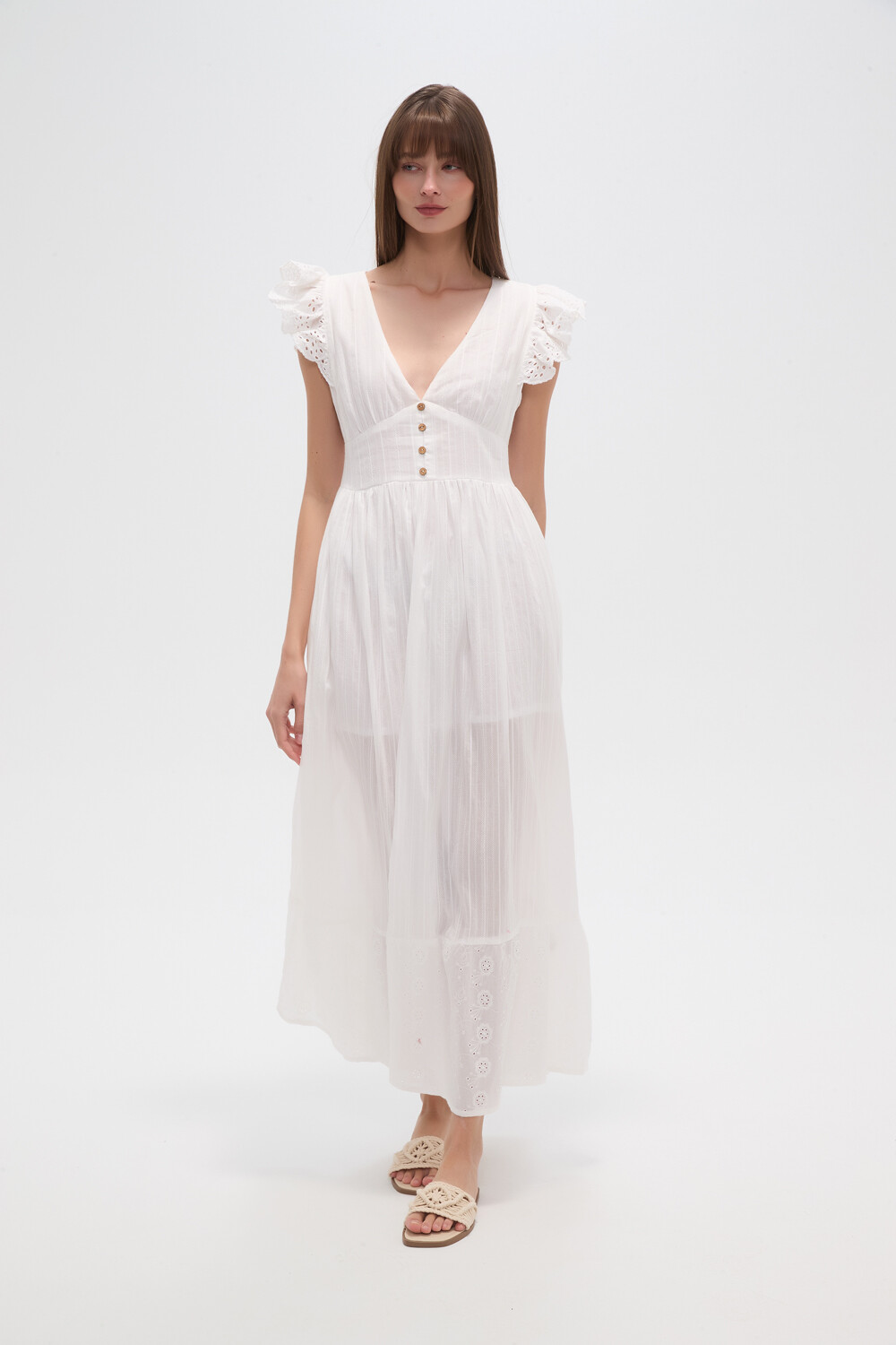 $ 1.087 Nuevos Recibilo en Vestido manga corta de algodon, broderie, entallado, con botones y cuello en v