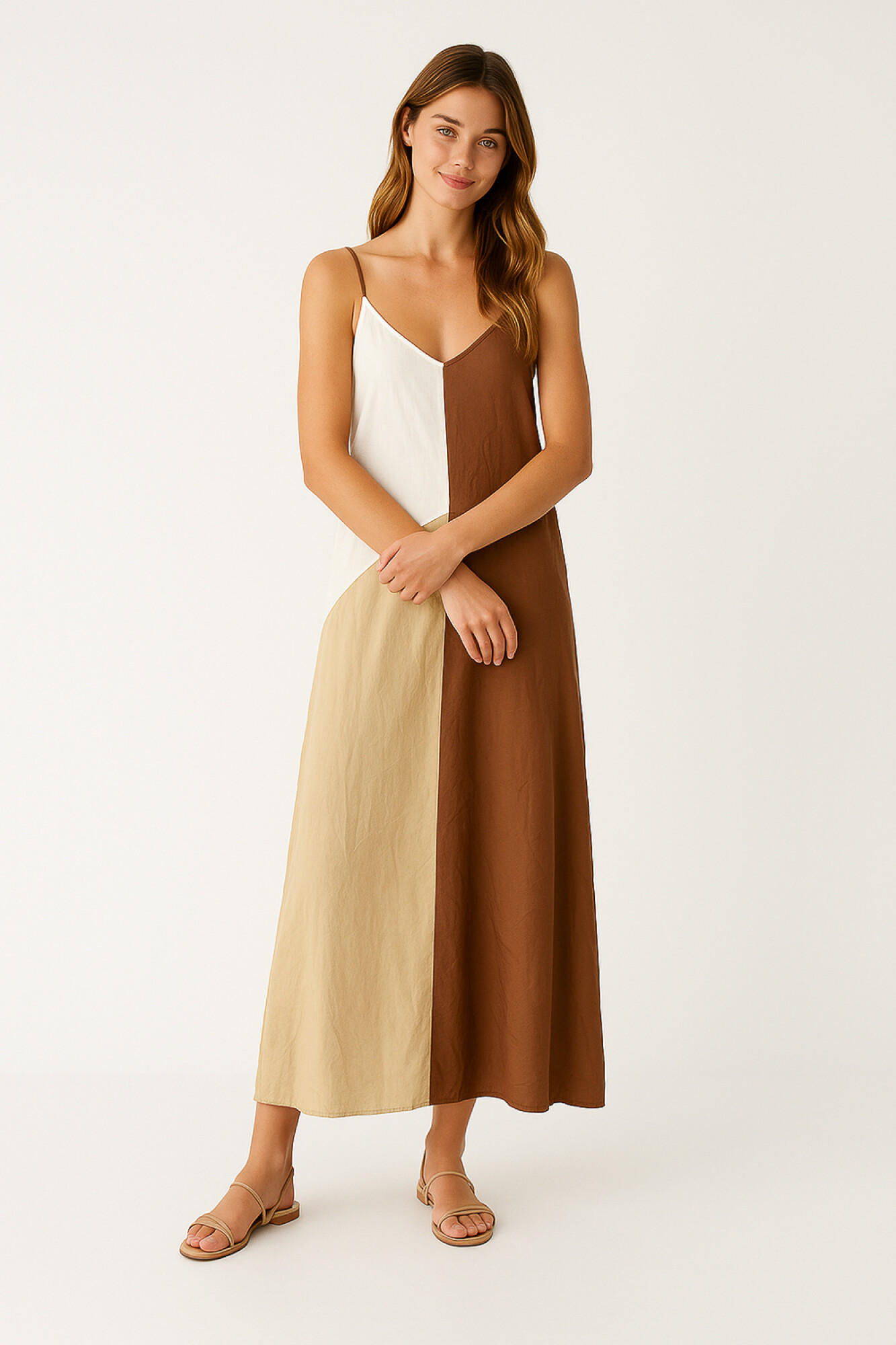 $ 787 Nuevos Vestido bretel fino, aop, estampado, ancho, holgado y cuello en v