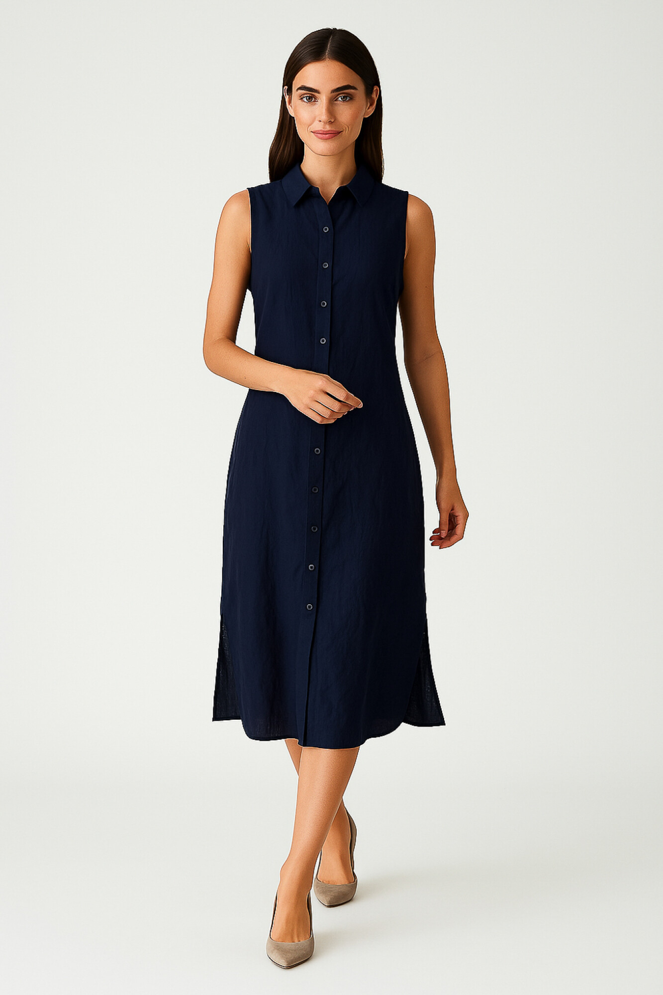 Nuevos Vestido midi de lino, ancho, con botones y cuello camisa