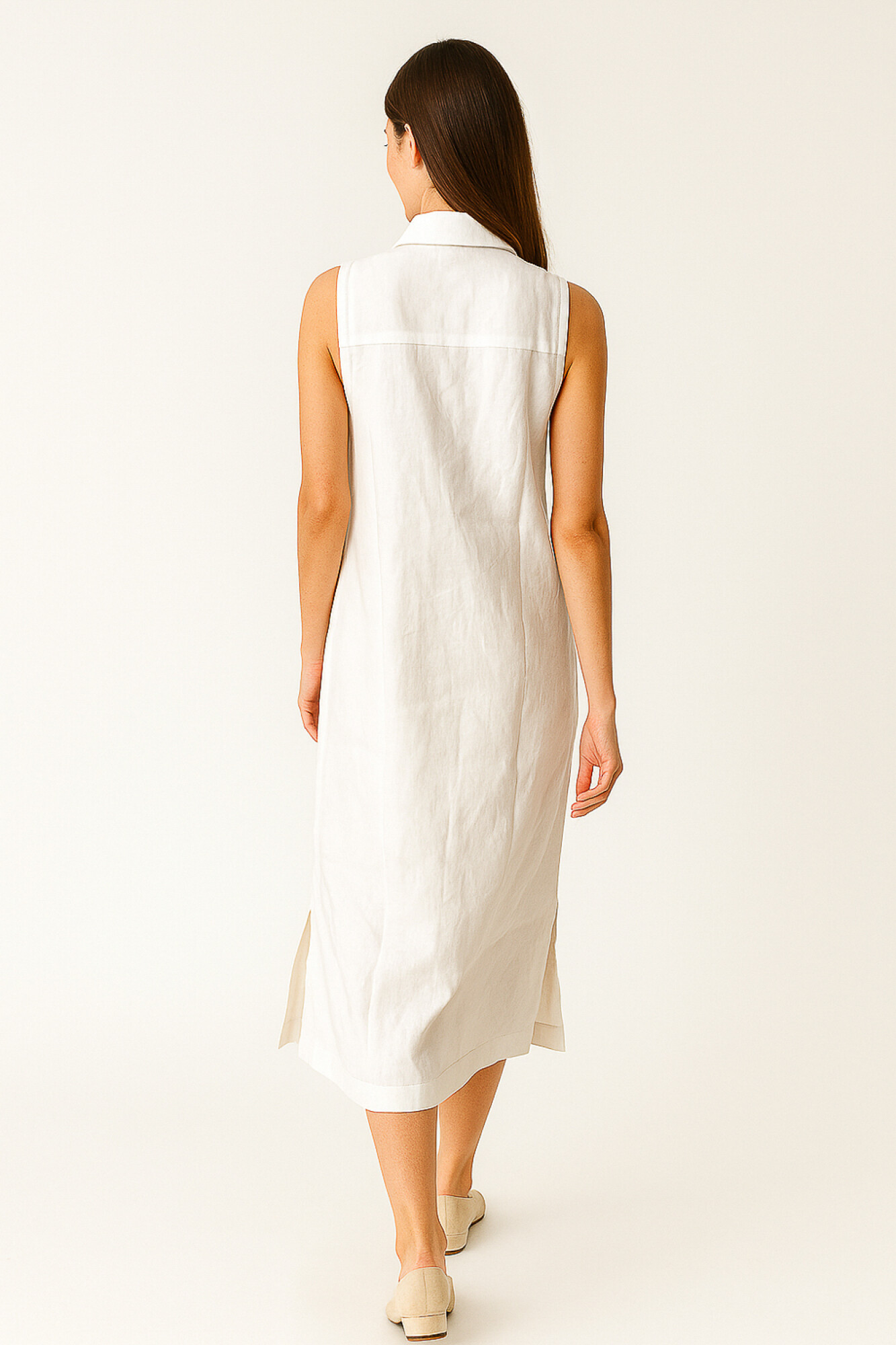 Nuevos Recibilo en Vestido midi de lino, ancho, con botones y cuello camisa