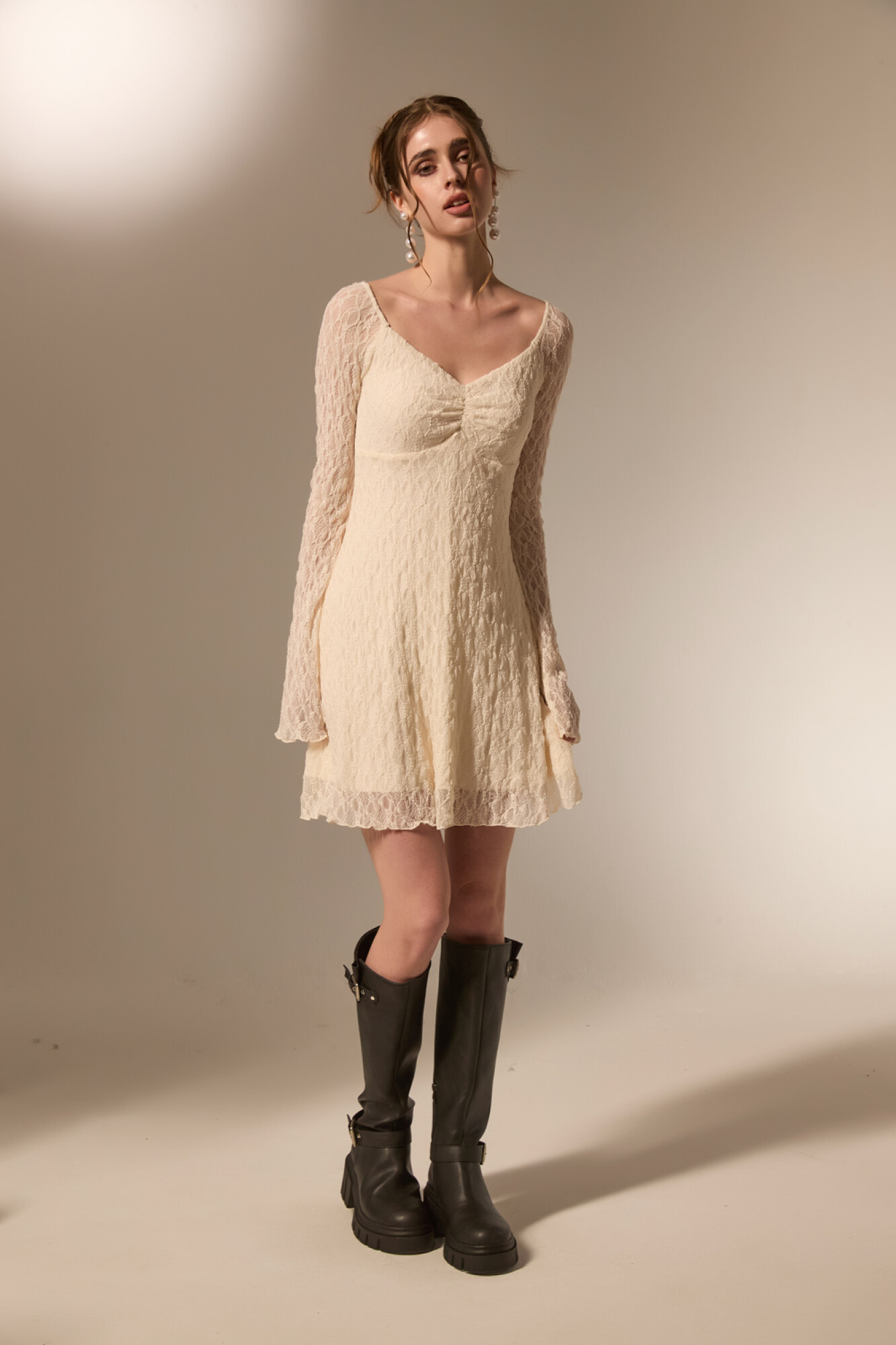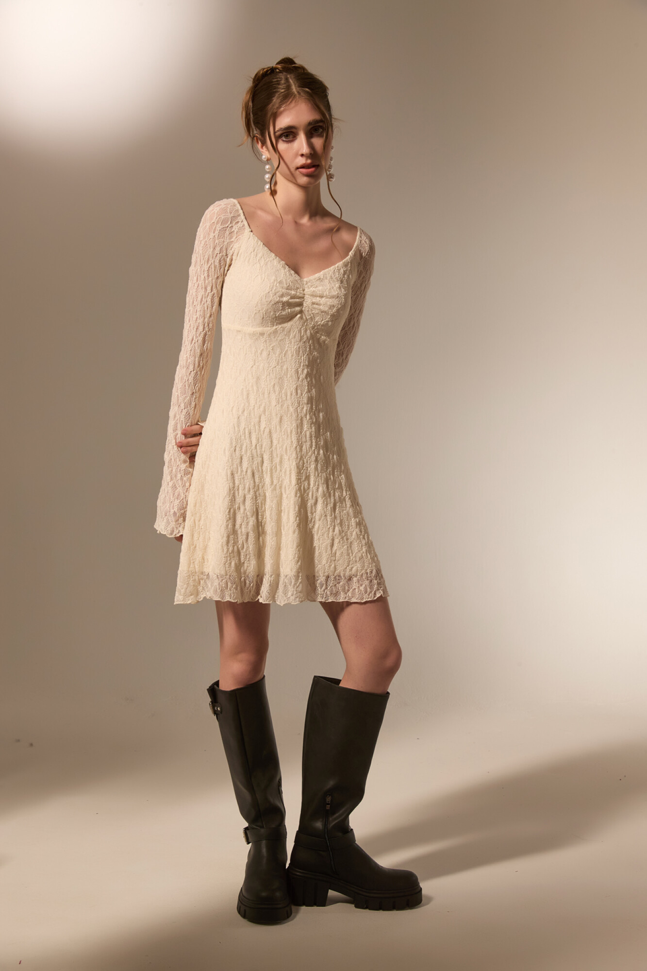 $ 883 Nuevos Vestido manga larga mini de poliester, evasé y cuello en v