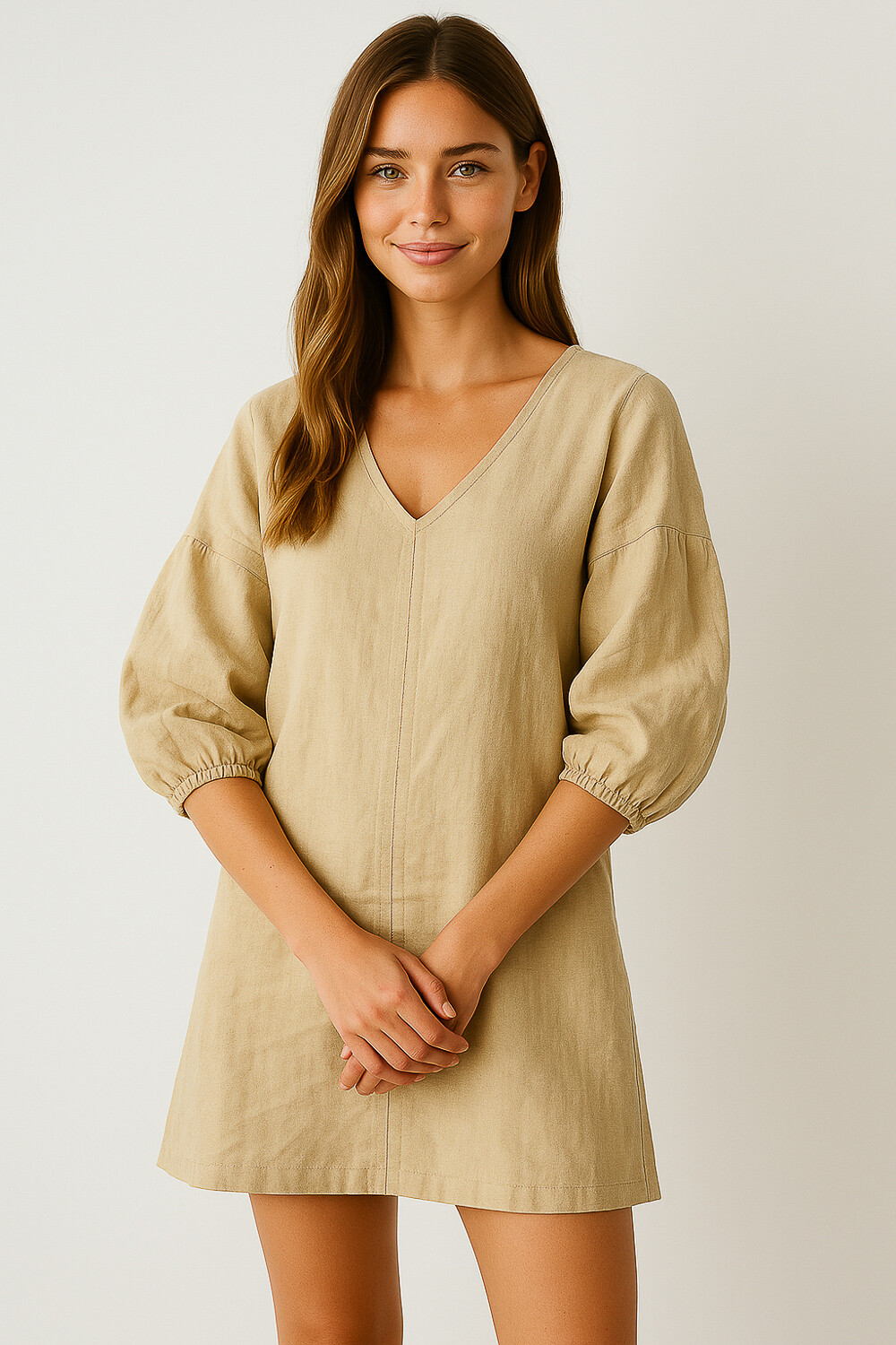 Nuevos Recibilo en Vestido lino y cuello en v